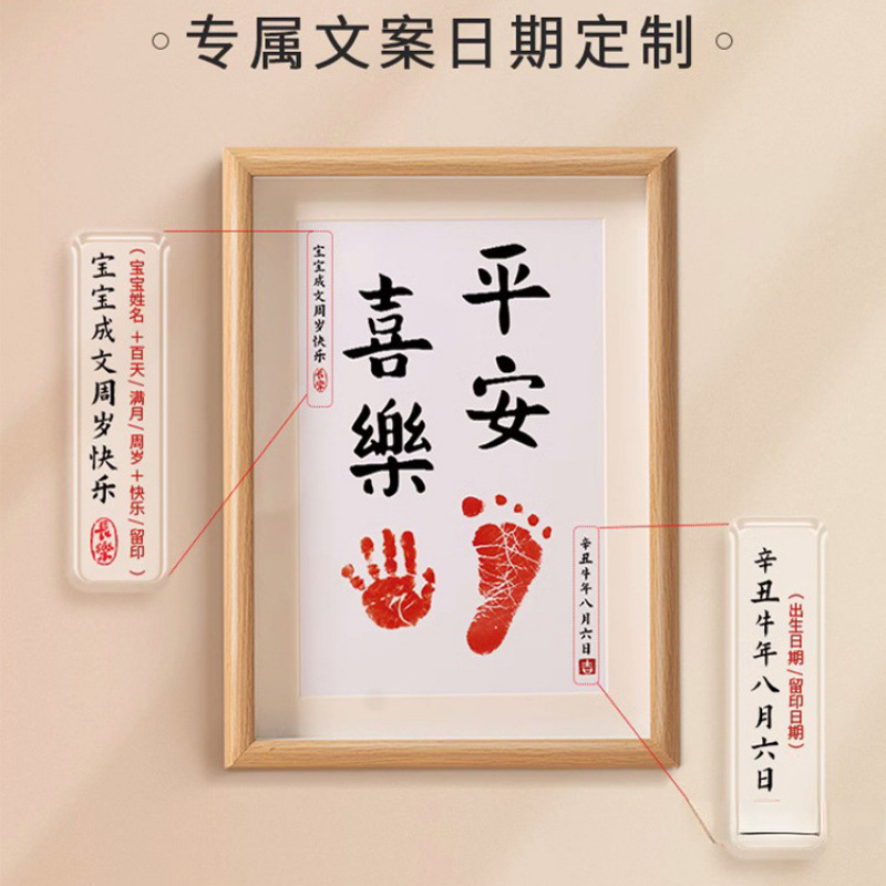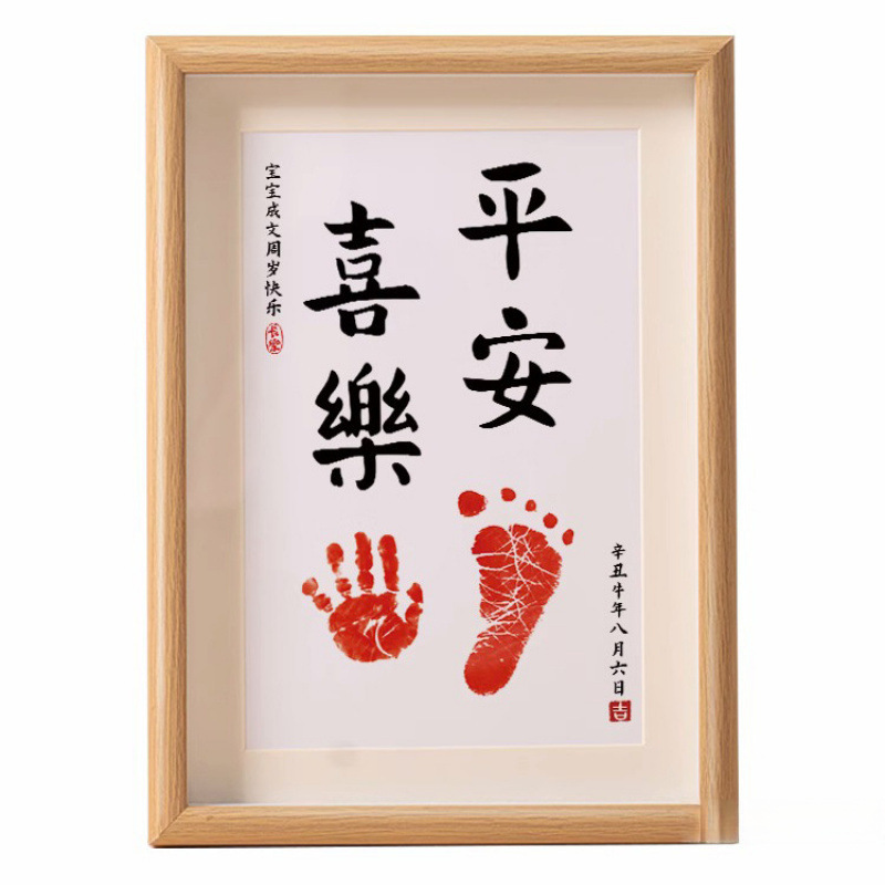 Baby's First Birthday Full Moon Photo Frame Calligraphy and Painting Contentment Ceremony Hand and Foot Baby's 100-Day Souvenir