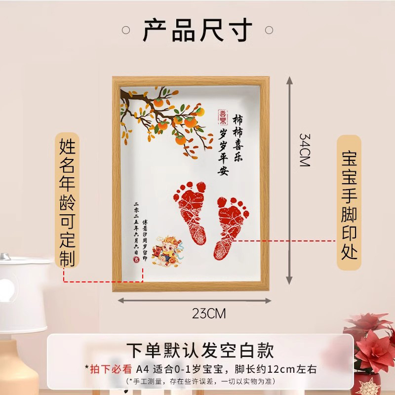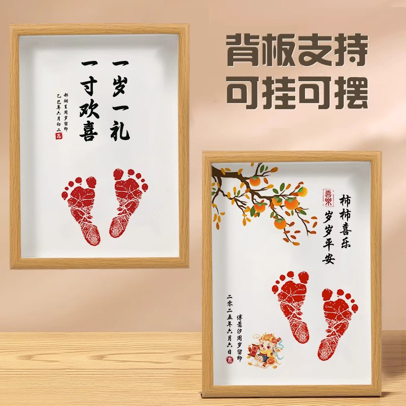 Baby's First Birthday Hand and Foot Prints, One-Year-Old Gift, Full Moon Commemorative Ritual, Dragon Baby Footprint Painting, Photo Frame, Nostalgia