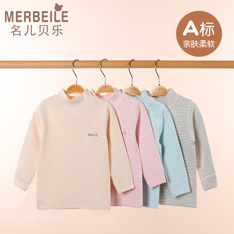 Baby's Mid-high Collar Underwear Spring Autumn Winter Warm Pajamas Baby Base Shirt Men's and Women's Pure Cotton Single-piece Top Clothes