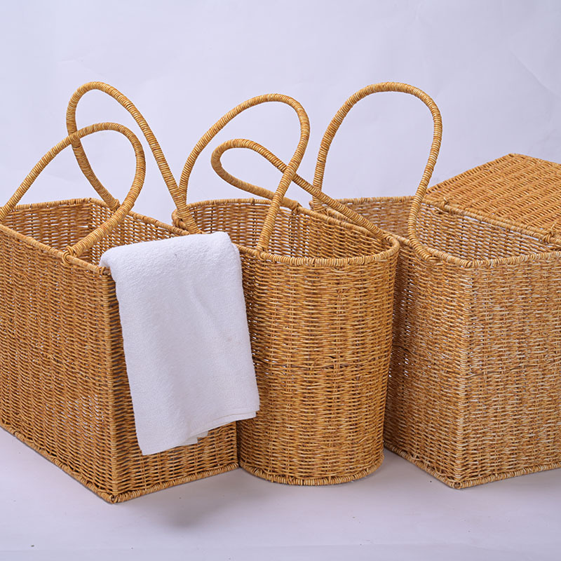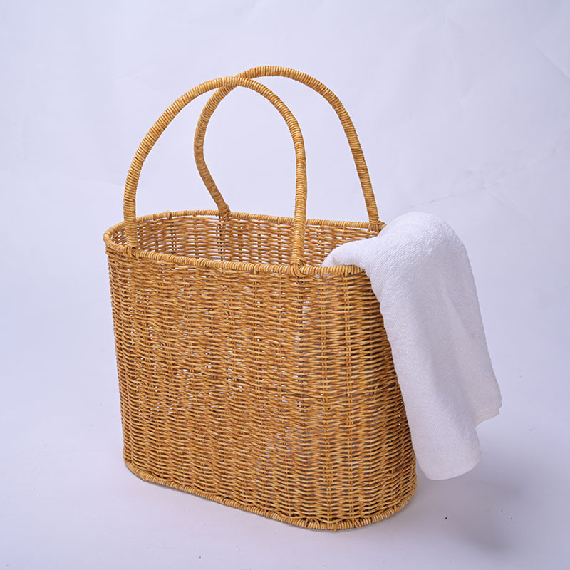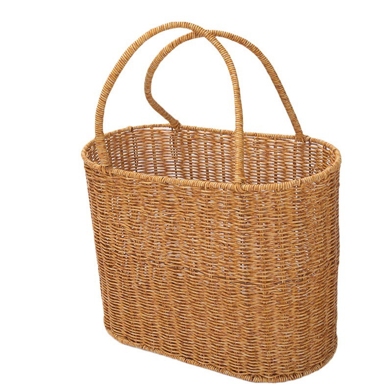 Baiwei Plastic Imitation Rattan Reinforced Rectangular Tote Storage Basket Handmade Woven Outdoor Picnic Basket