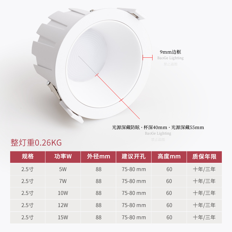 Baoge led anti-glare downlight 98 narrow border aisle kitchen intelligent three-color embedded ceiling unhosted downlight