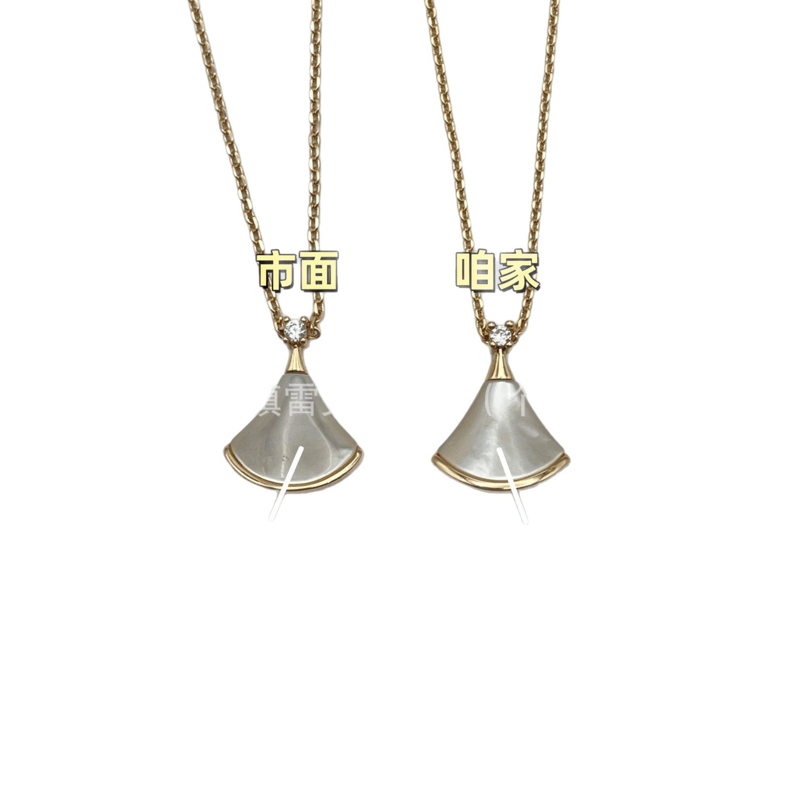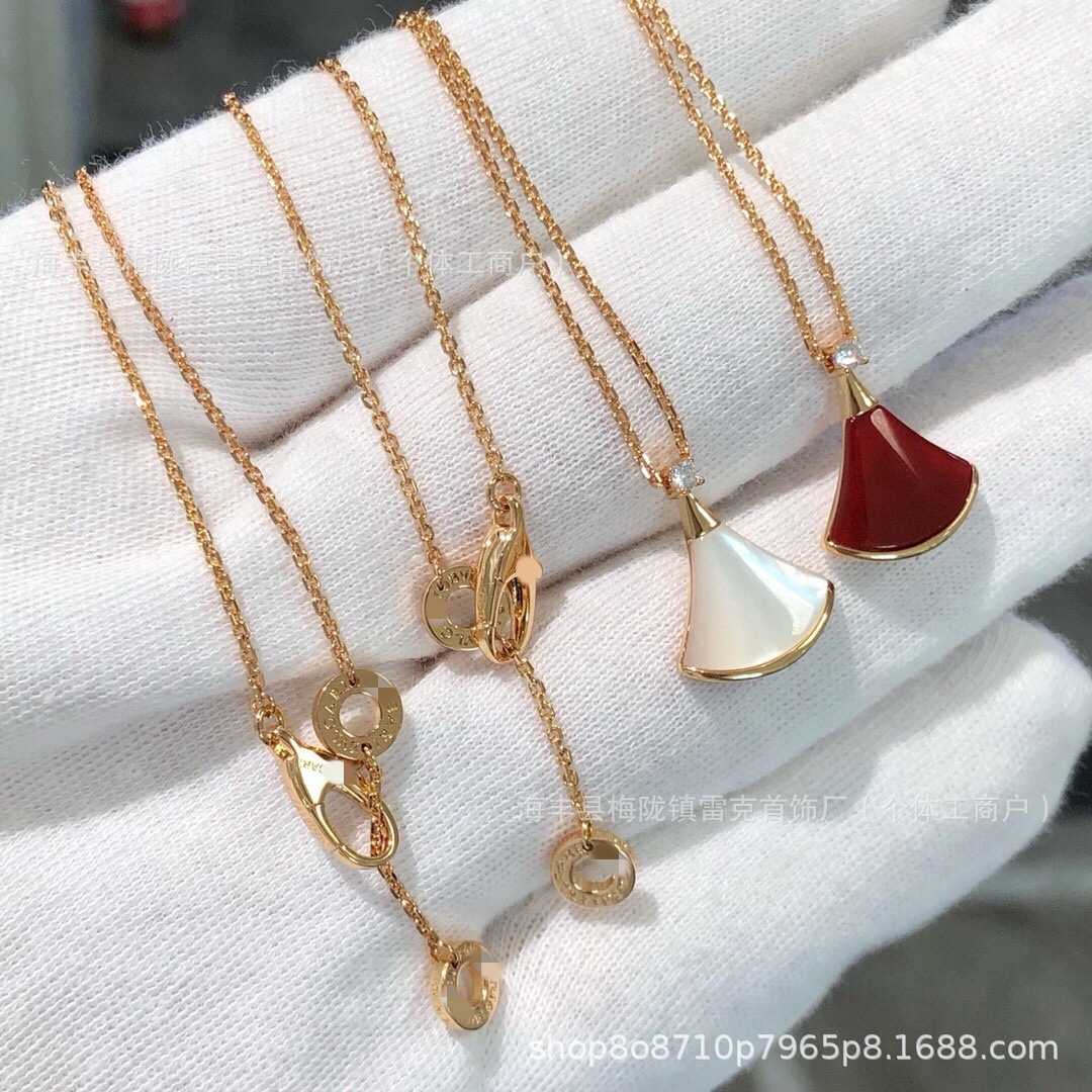 Baoge Small Skirt Necklace Fan-Shaped Double-Layer Full Diamond White Mother-Of-Pearl Carnelian V Gold Cnc Precision Silver Thick Plated 18K