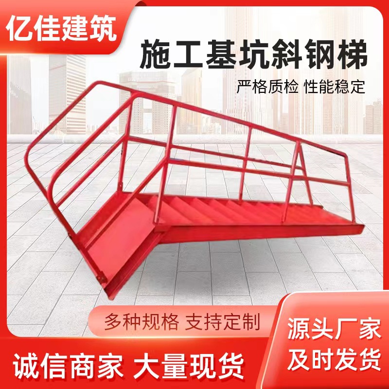 Base Pit Inclined Ladder, Base Pit Temporary Steel Structure, Inclined Steel Ladder, Construction Site Workers, Upper and Lower Safety, All Steel Ladder