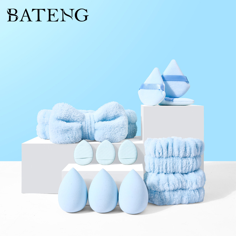 Bateng Cross-Border Makeup Tool Combination Coral Velvet Headband Photo Studio Sponge Puff Does Not Eat Powder Q Elastic Air Cushion