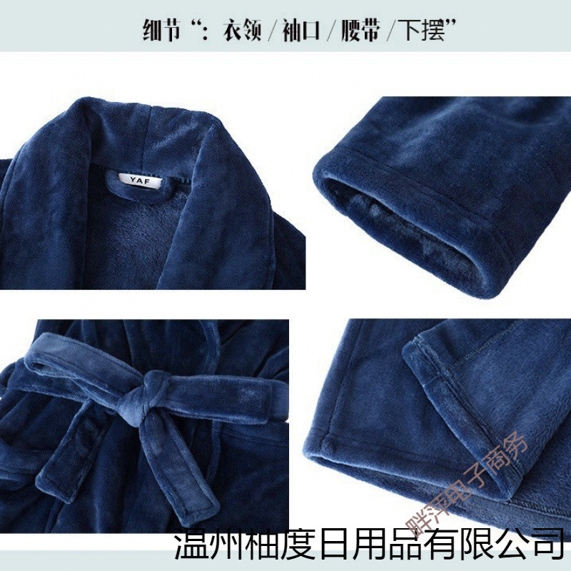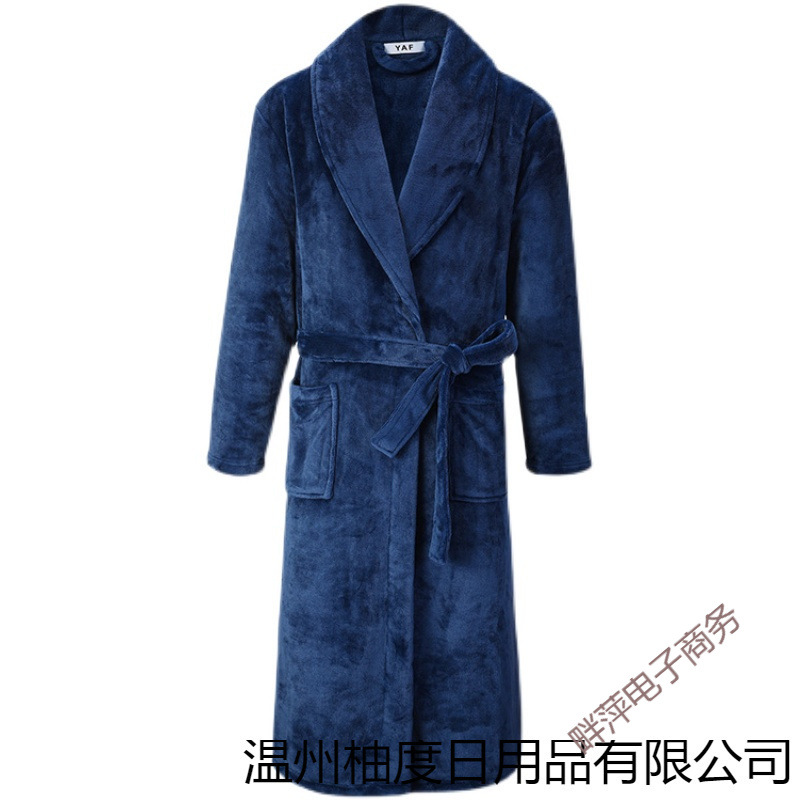 Bathrobe Men's Thickeneded Flannel Fleece-Lined Pajamas Coral Velvet Nightgown Women's Winter Long Large Size Home Wear Hotel Bathrobe
