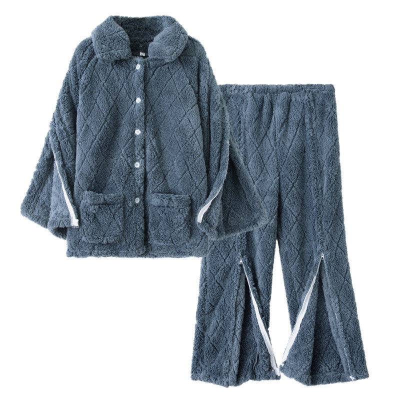 Bedridden elderly fracture hospital gown easy to wear and take off medical care clothing wholesale coral fleece thickened pajamas coat autumn and winter