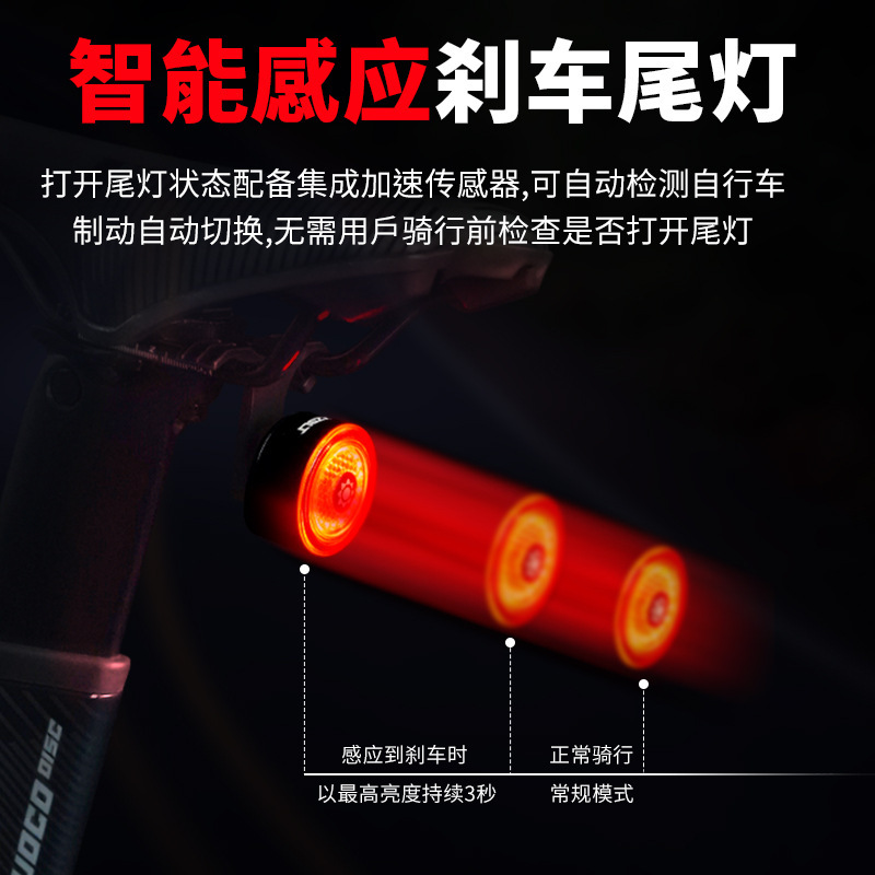 Bicycle tail light intelligent induction brake night riding road mountain bike cycling equipment lamp charging accessories