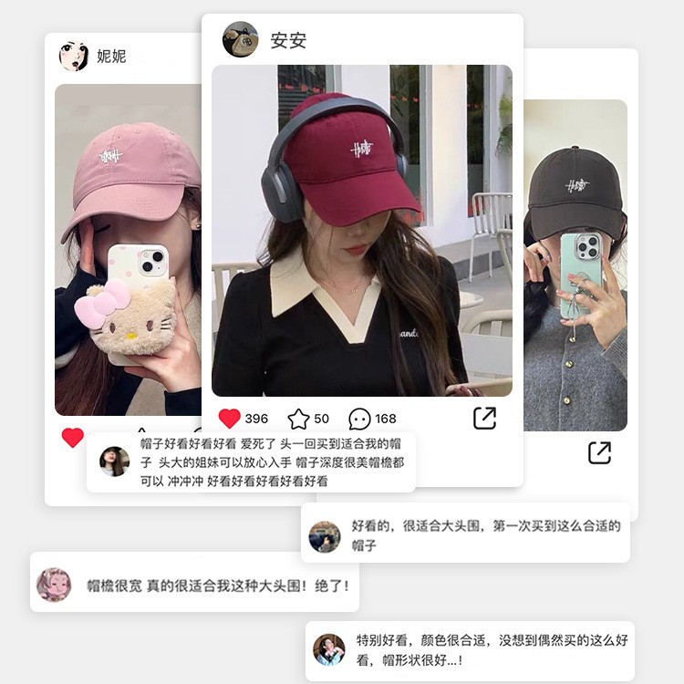 Big Head Baseball Cap Enlarge Deepened Wide Brim Big Face Baseball Cap wine red Duck Tongue Hat Men's Ancora Red