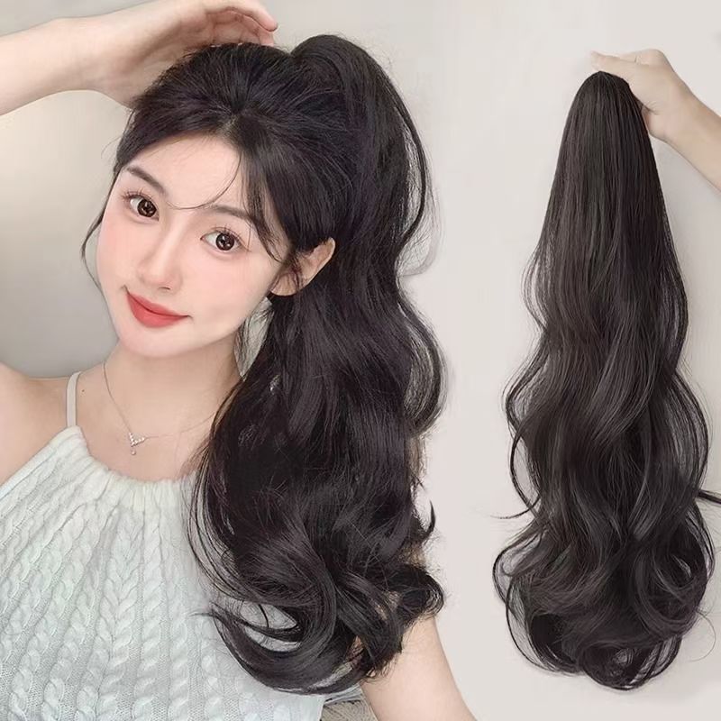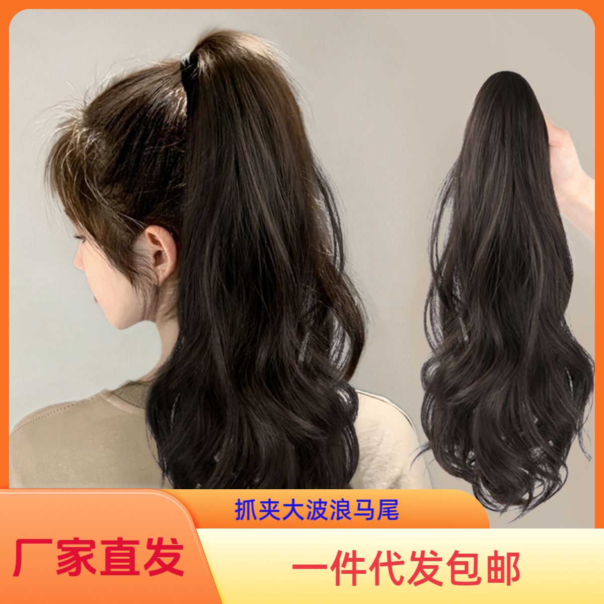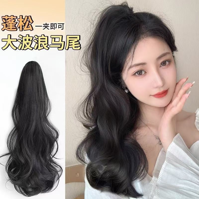 Big Waves High Ponytail Curly Hair Clamping Wig Women's Long Hair Twisted Braid Natural Faux Hair False Ponytail