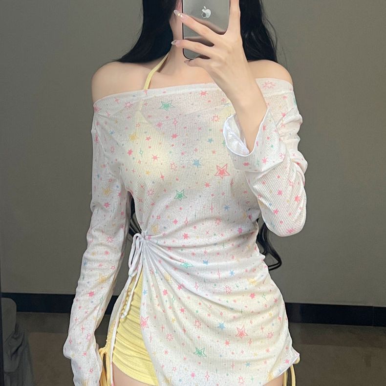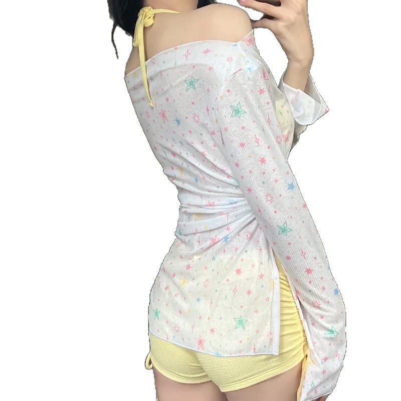 Bikini Swimsuit Female Star Long-Sleeved Sun Protection Cover-Up Split Boxer Briefs Cover Belly Slimming Look Conservative Hot Spring Three-Piece Set