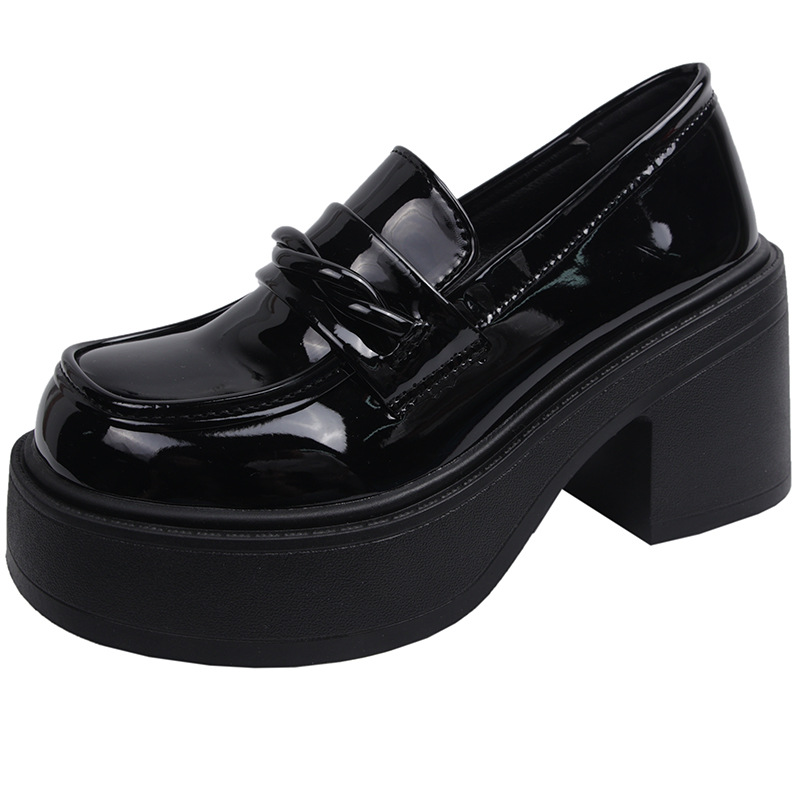 Black British Style Versatile High-Heeled Thick-Soled Small Leather Shoes for Women 2025 New Summer Slip-On Heightening Loafers