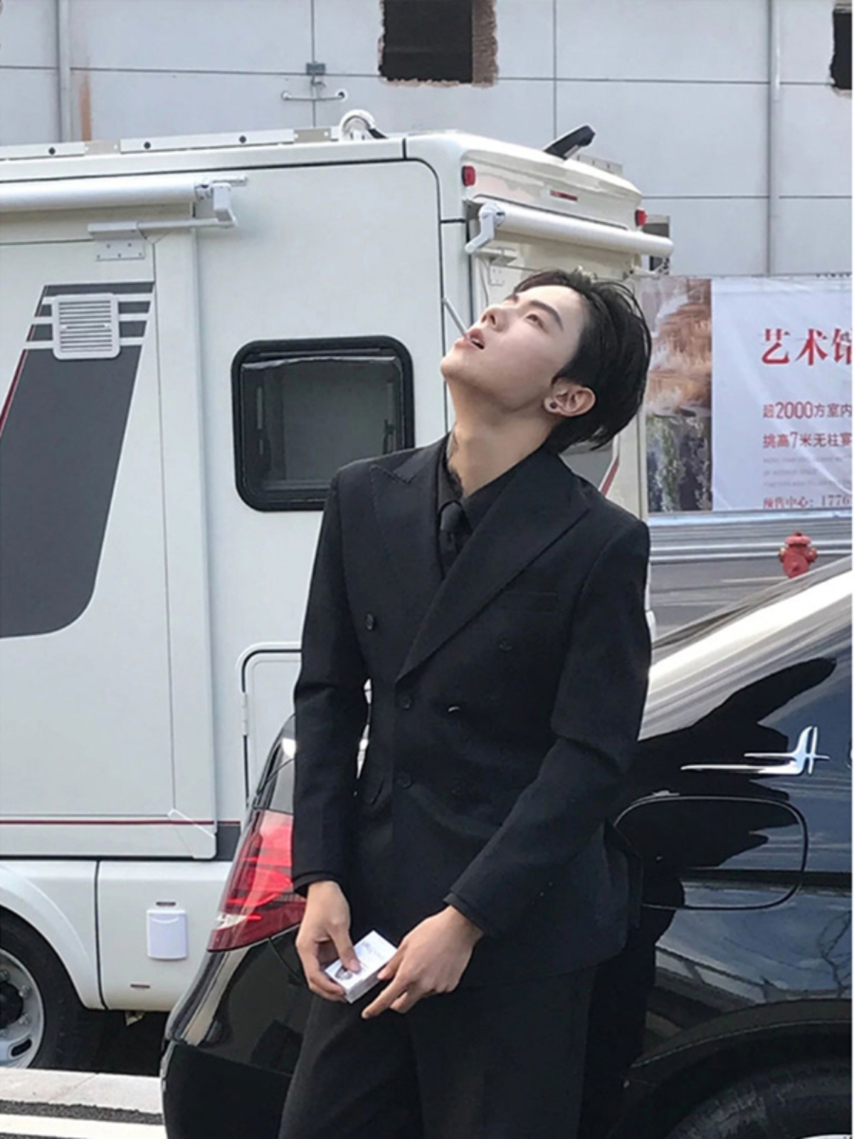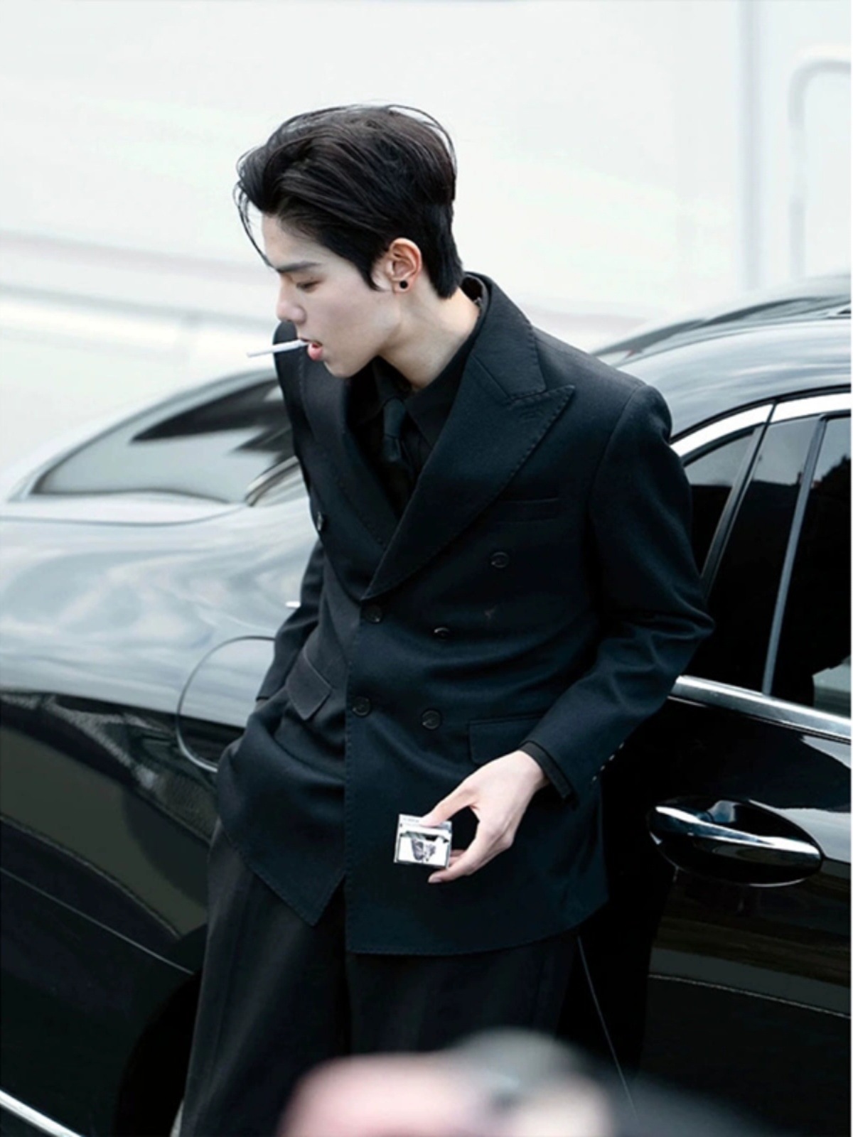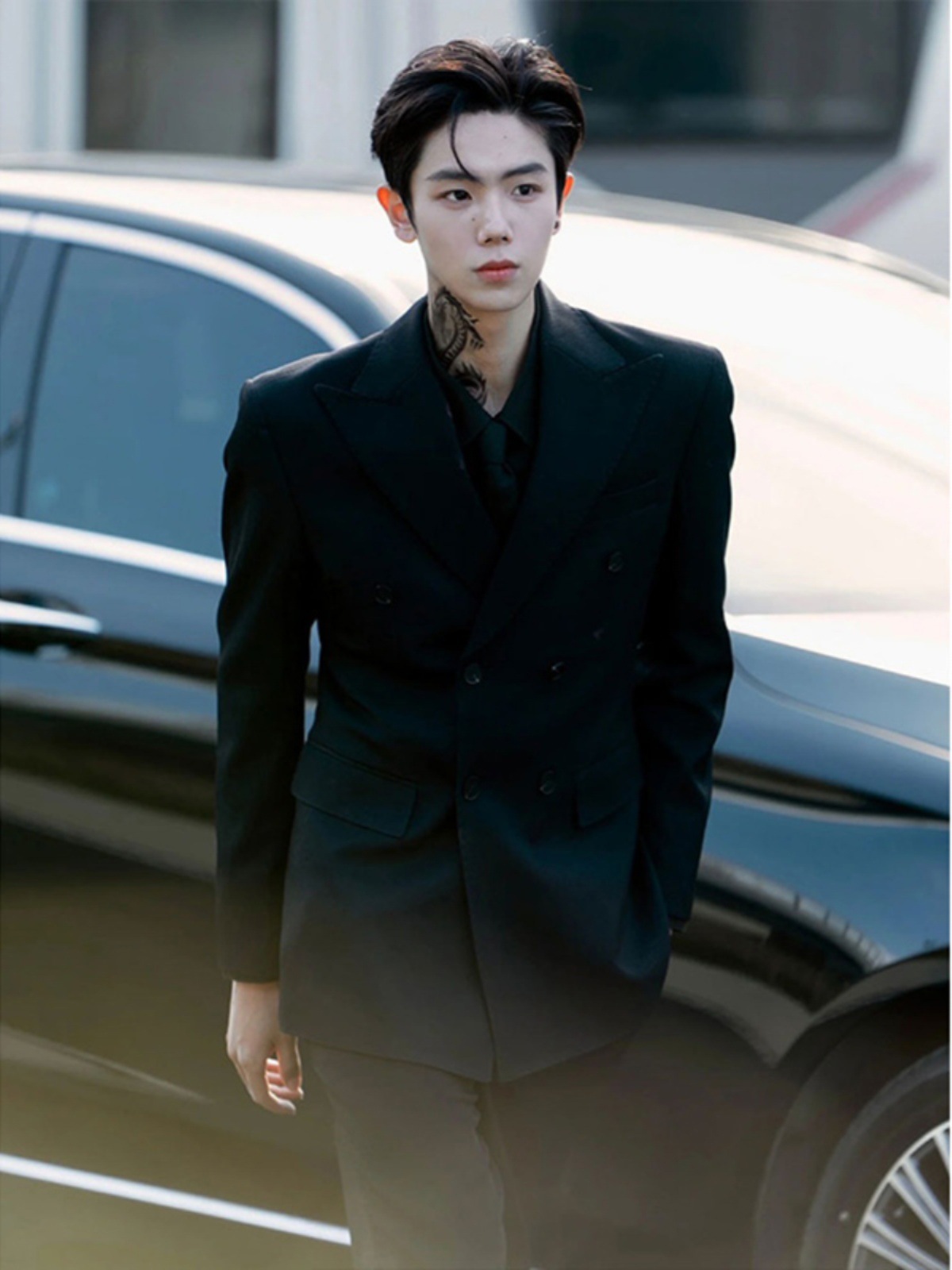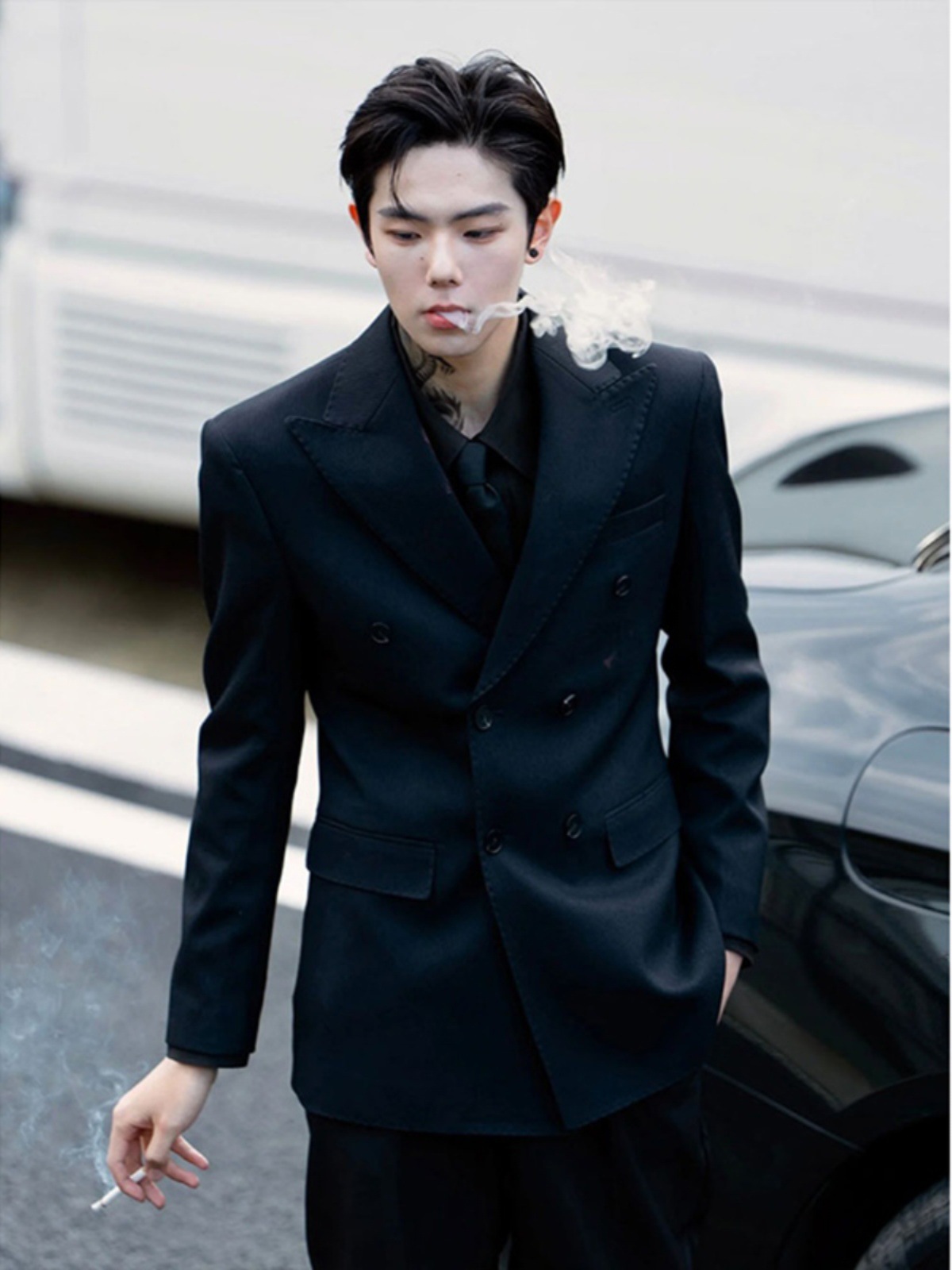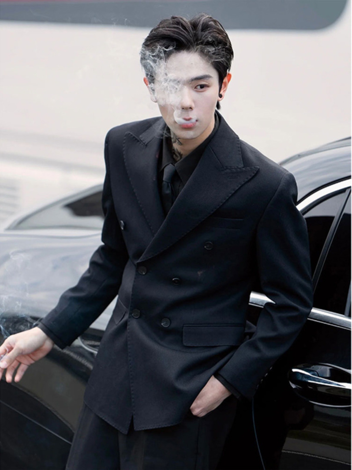 Black Casual Suit Jacket Men's Spring and Autumn High-end Feeling Yuppie Handsome British Yuppie Men's Jacket Double-breasted Suit