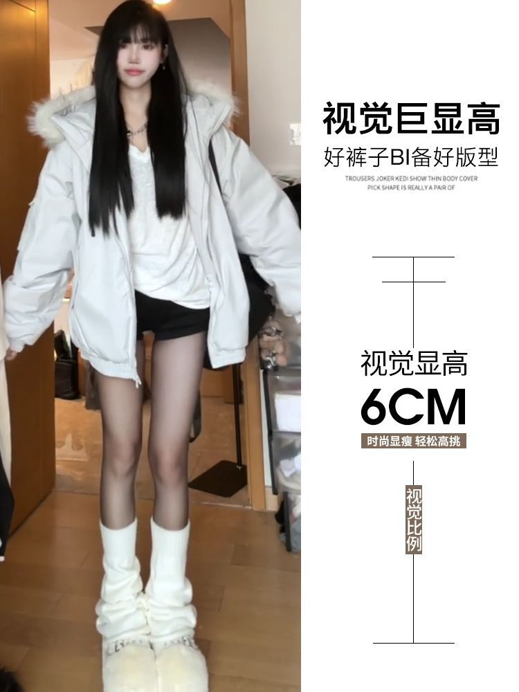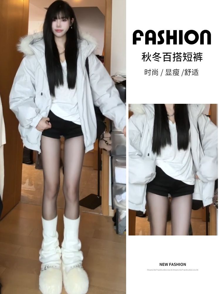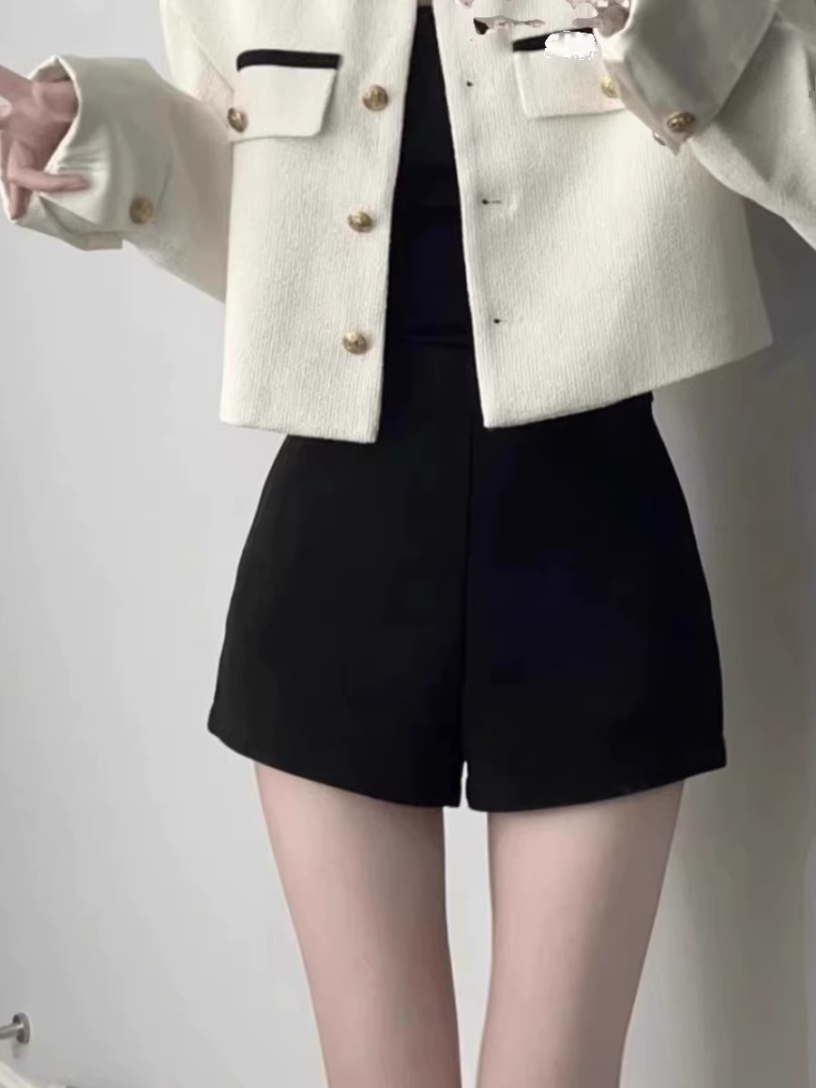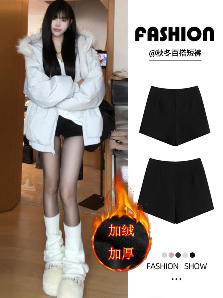 Black fleece-lined Shorts Women's Spring Autumn and Winter New Arrival A- line Wide Leg Pants for Small Men Outer Wear High Waist Slimming Hot Pants for Hot Girls