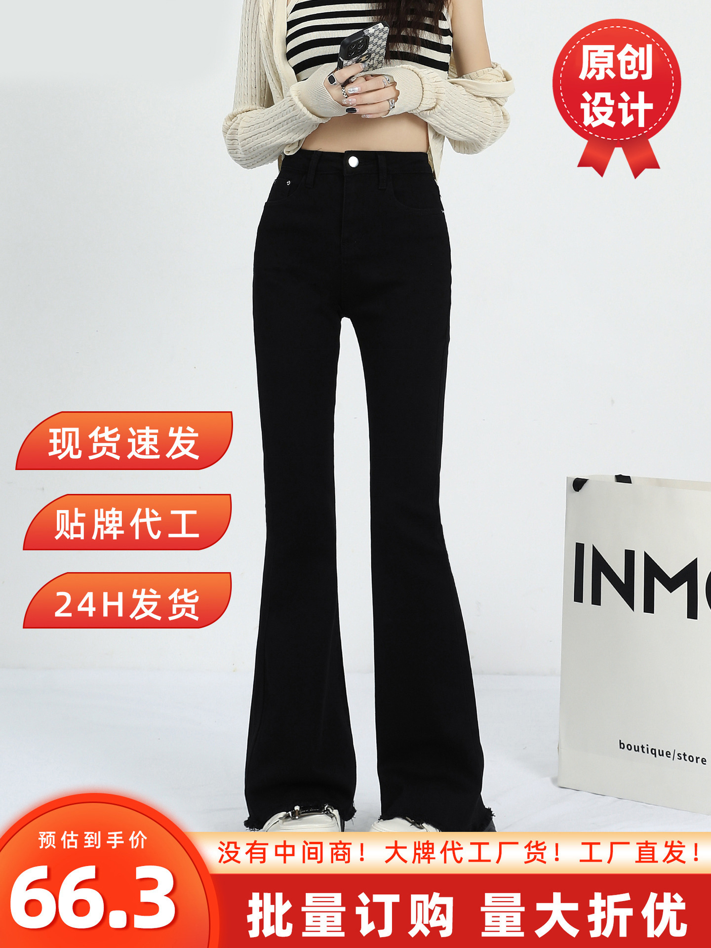 Black Bootcut Jeans for Women Autum 2025 New High-Waisted Slimming Look Elastic Horseshoe Flared Pants