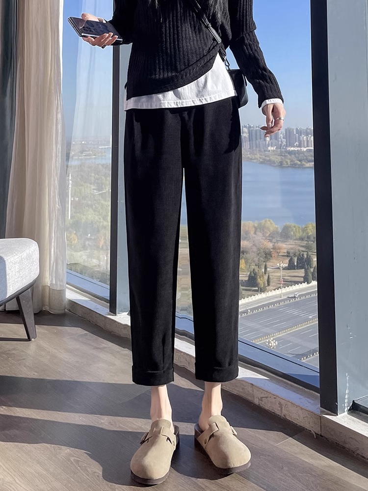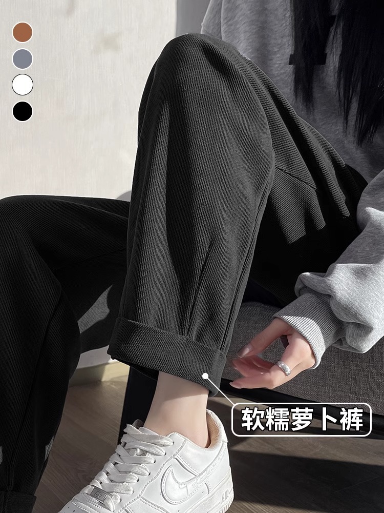 Black Pipe Harem Pants Women's 2025 Spring and Autumn New chubby girl Loose Slimming High Waist Straight Casual Carrot Pants