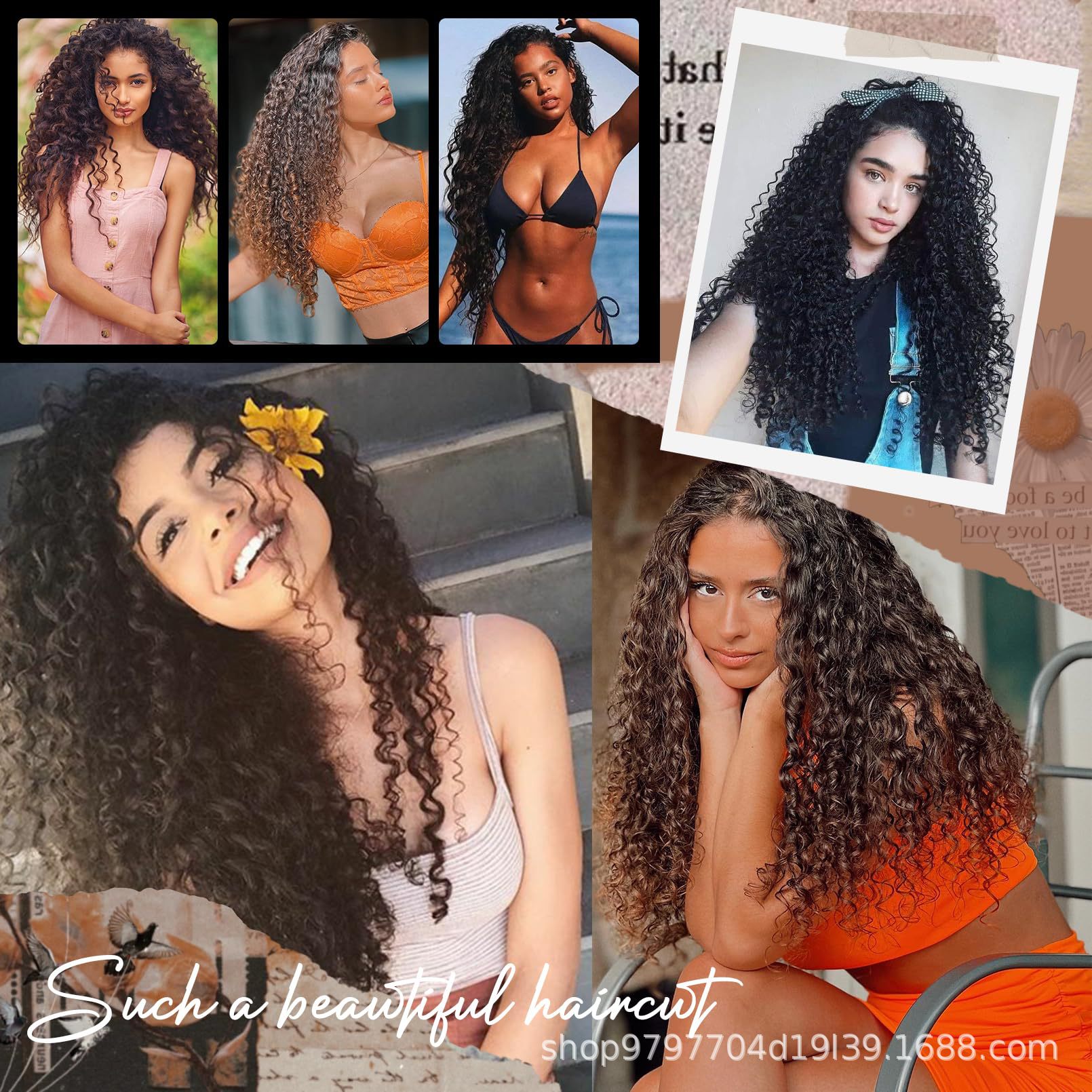 Black Synthetic Wig Curly Clip Hair Piece Full Head Heat Resistant Fiber Synthetic Curly Hair Extending African Roll 9 Piece Set