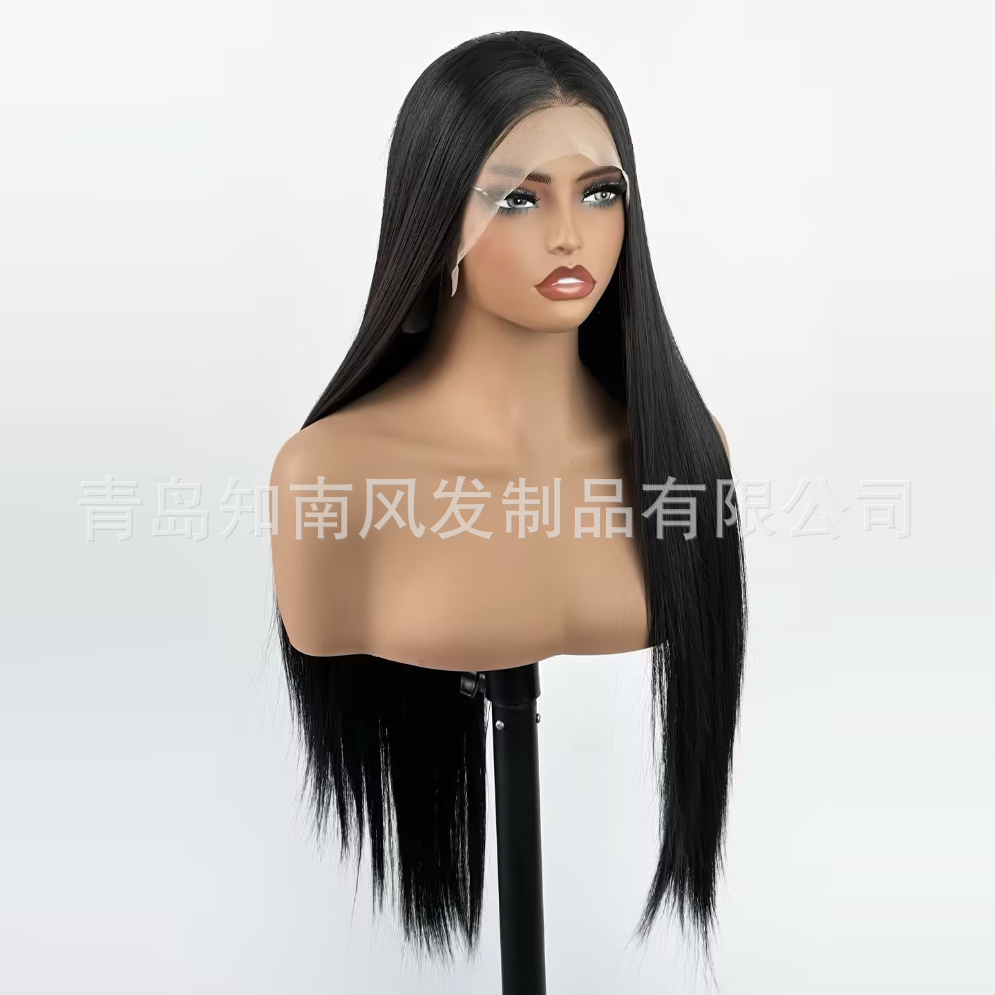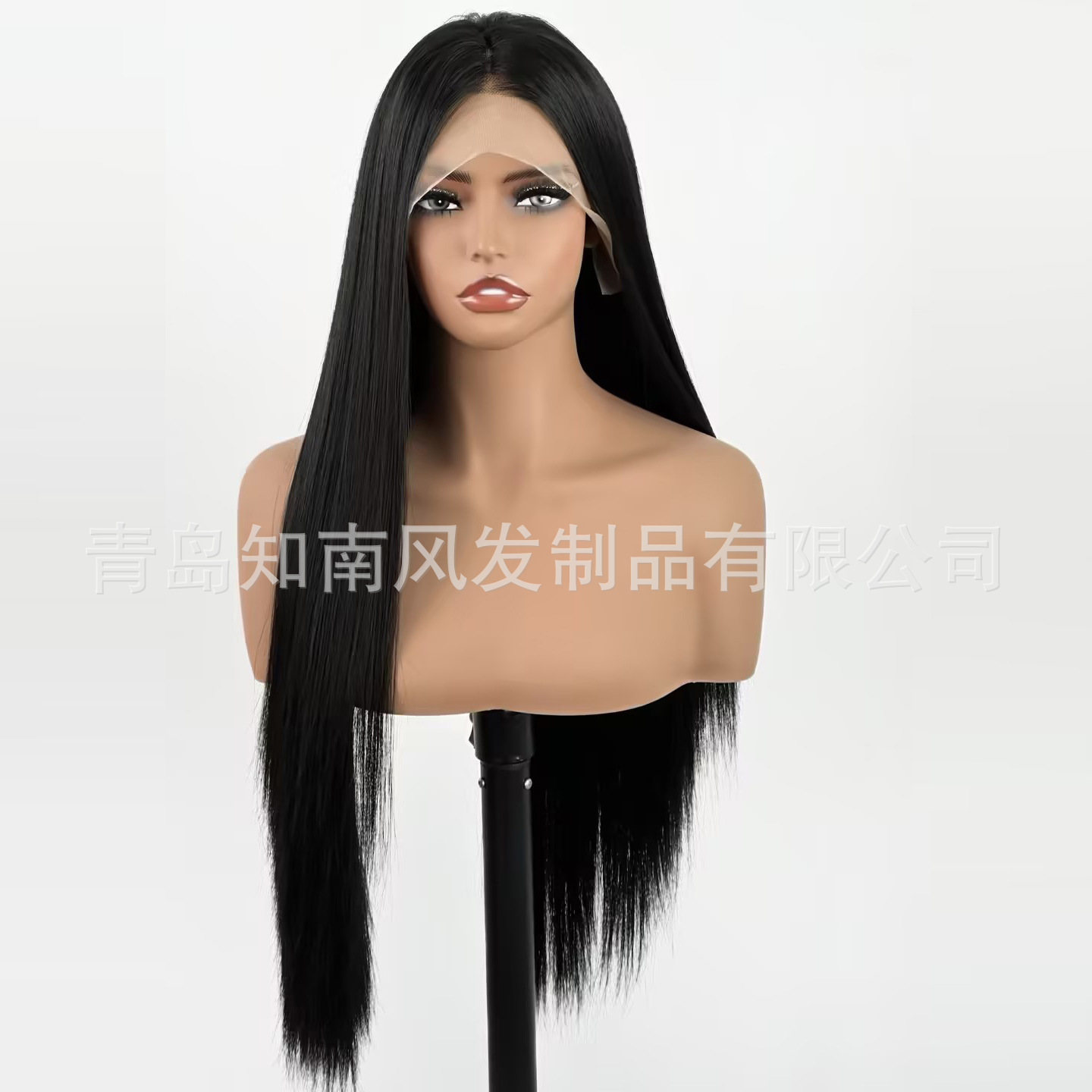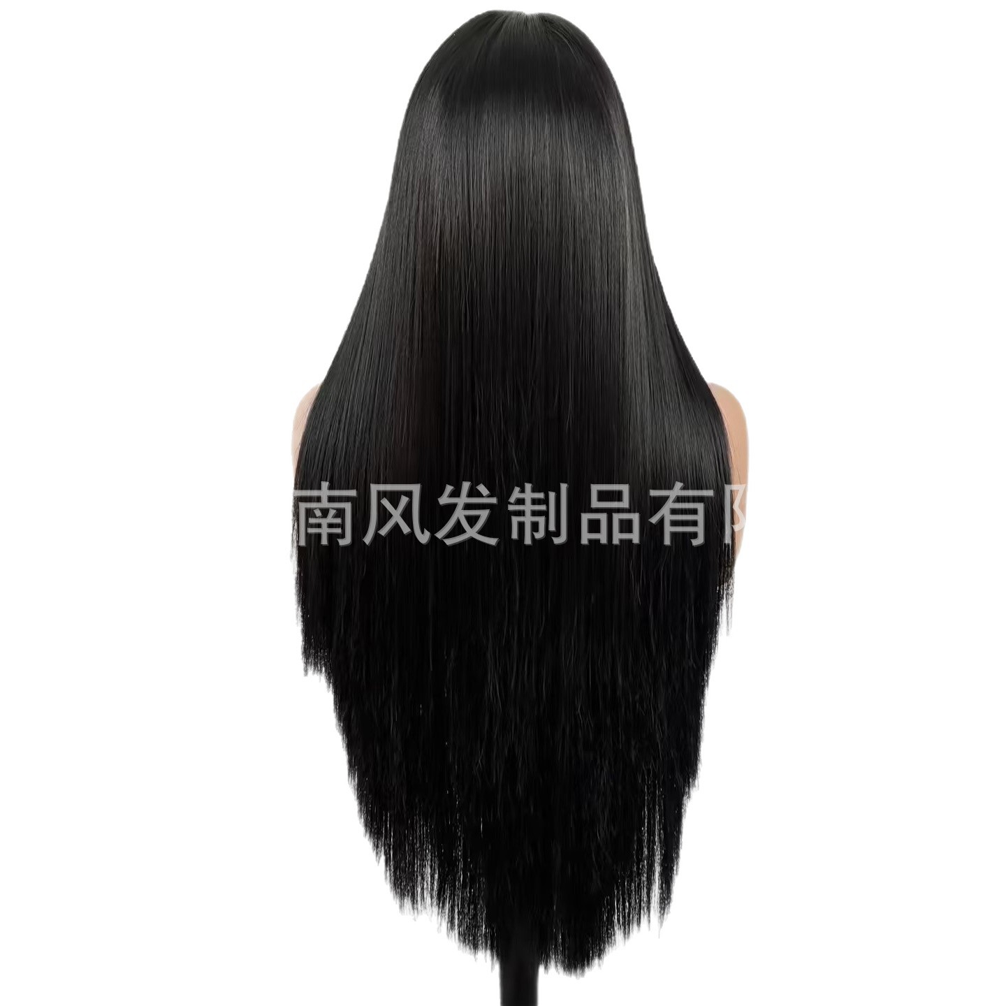 Black Synthetic Wig with Hand-Tied Lace Front 13X4 High-Temperature Fiber Long Straight Hair Women's Full Wig Coswigs