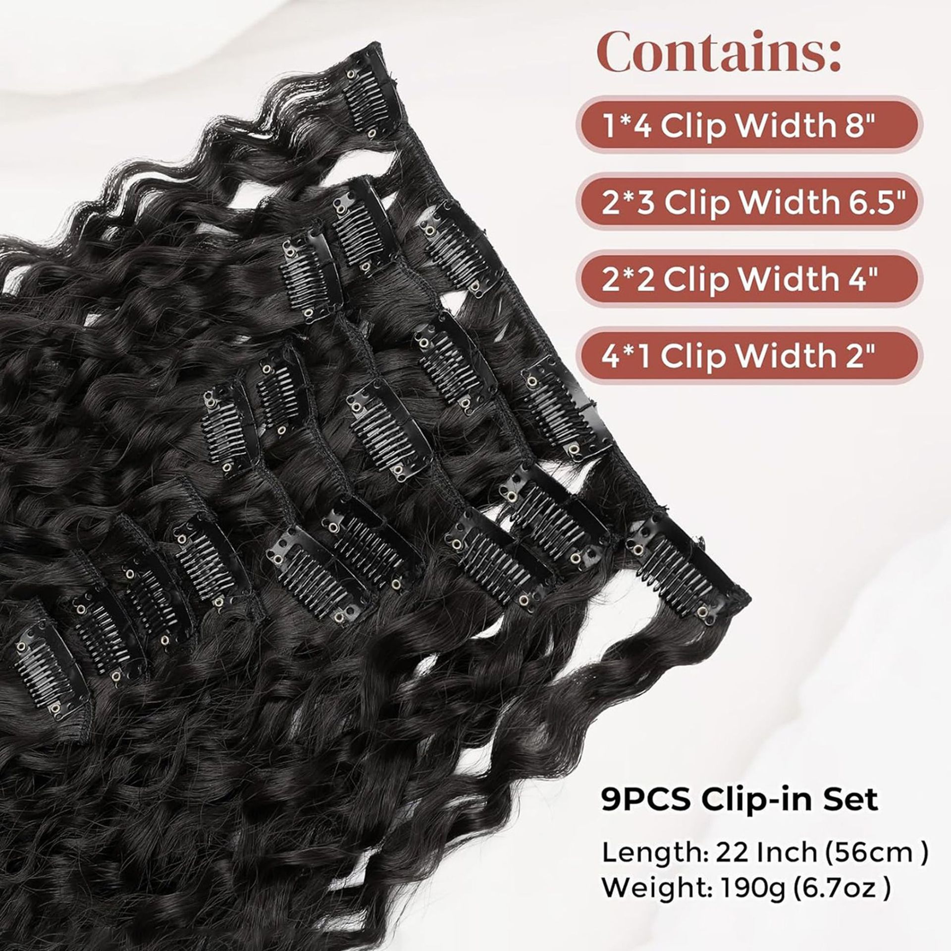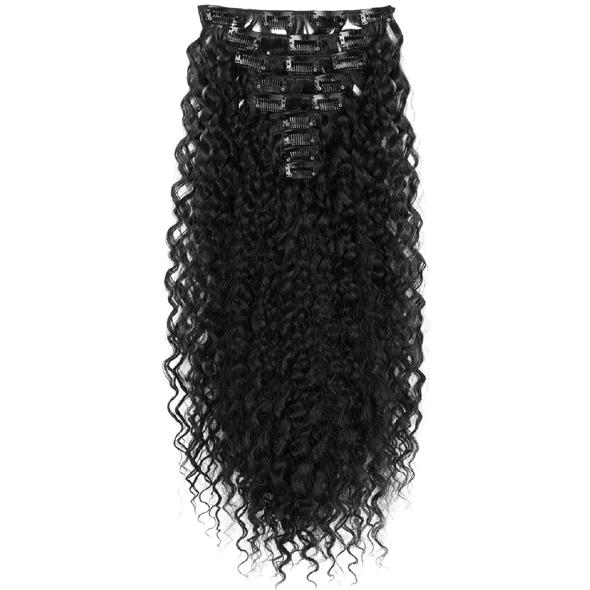 Black Wig Curling Clip Wig Full Head Heat Resistant Fiber Synthetic Natural Hair Extending African Roll 9 Piece Set