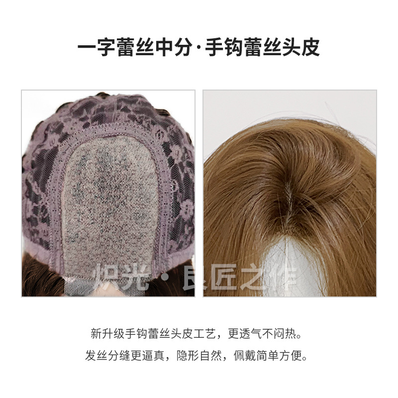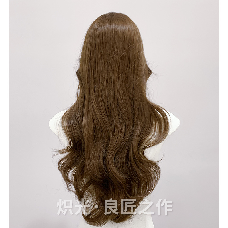 Blazing wig milk brown front lace women's long curly hair natural simulation net red full head cover wholesale cross-border in stock