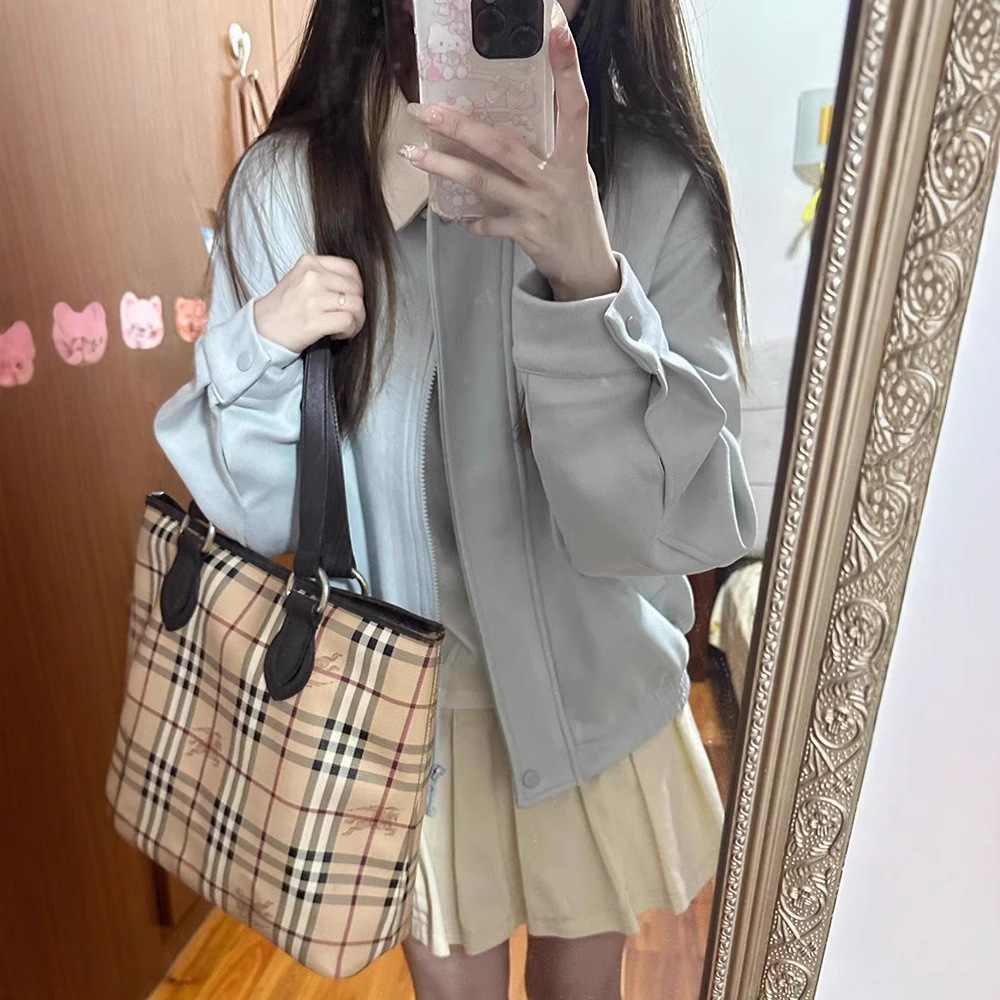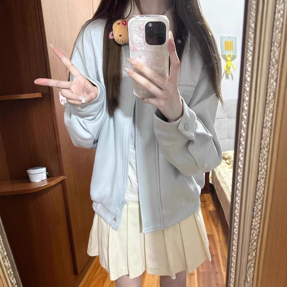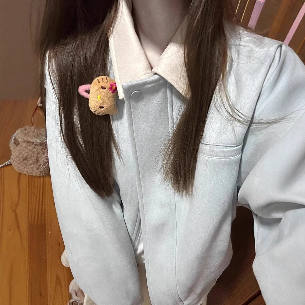 Blue Lapel Baseball Suit Coat Women's Autumn 2025 New American Sweet Jacket Suede Early Autumn Top