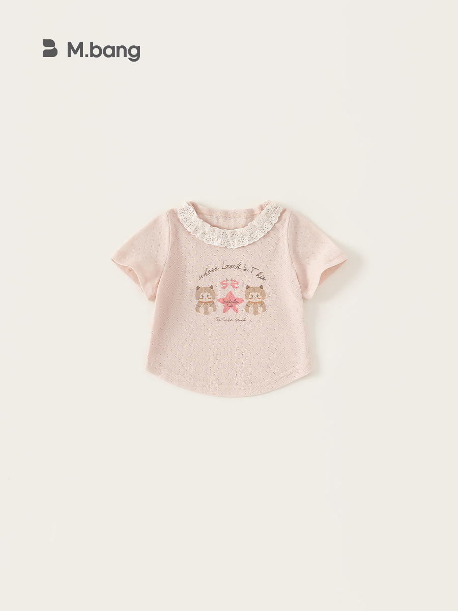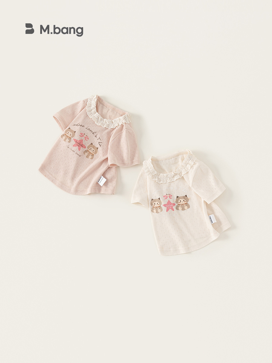 Bong Select Children's Summer New Thin Top for Female Baby Korean Pattern T-Shirt Girls' Lace Round Neck Short Sleeve