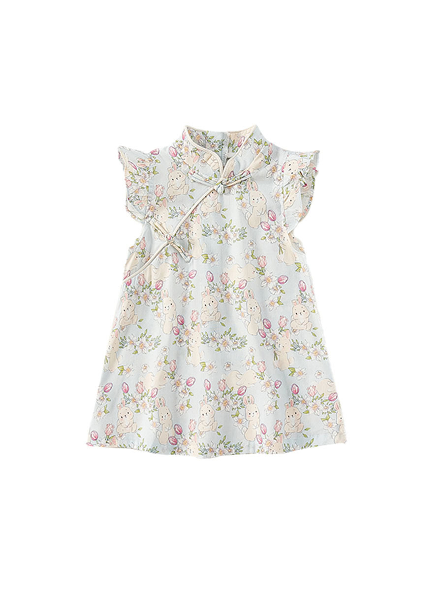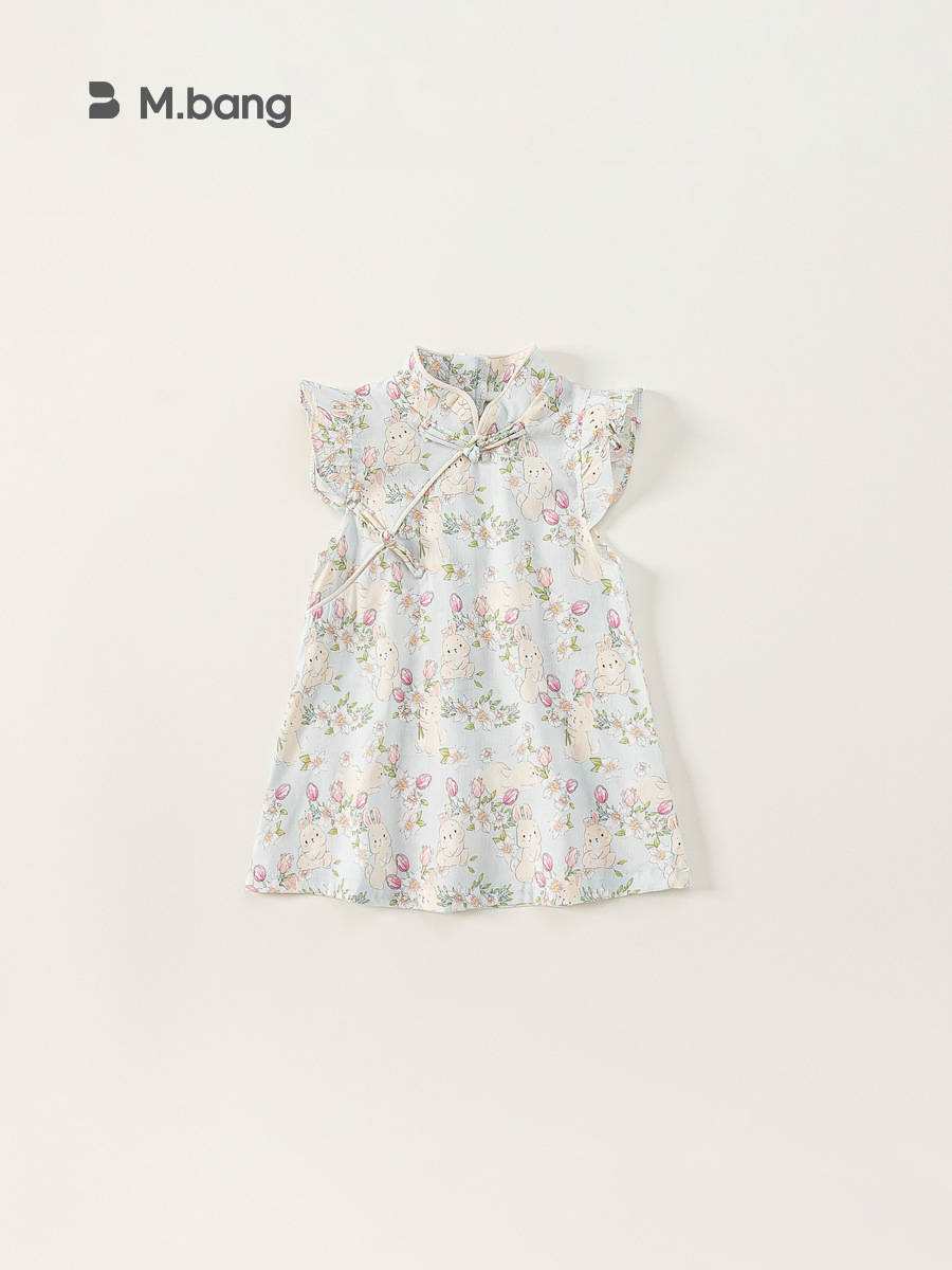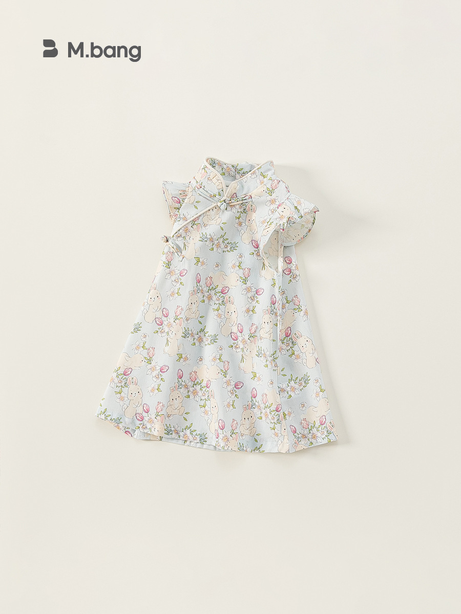 Banggxuan Summer Girls' Dress Baby Chinoiserie Kidsren's Thin Toddler Cheongsam Girl's Chinoiserie One-Year-Old Kidsren's Clothing