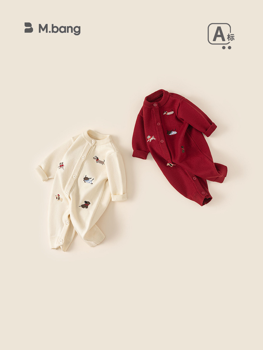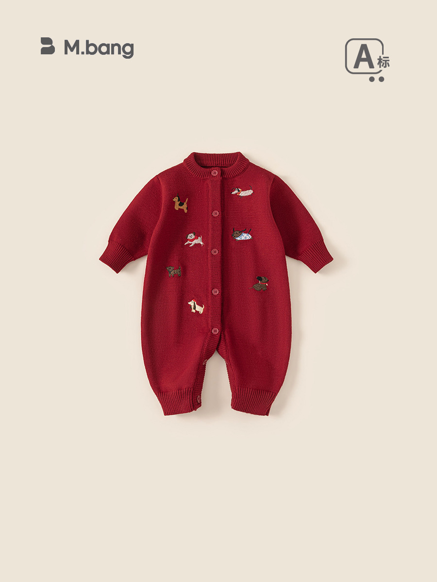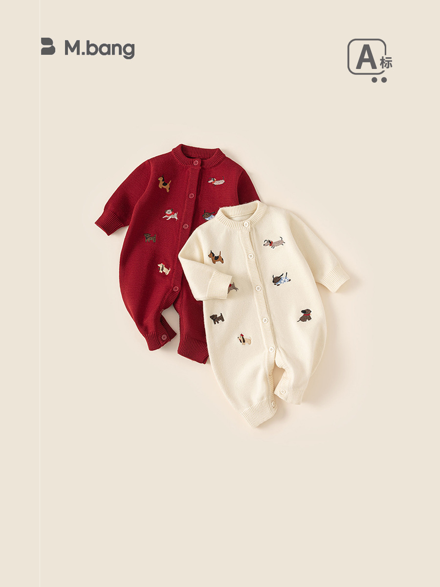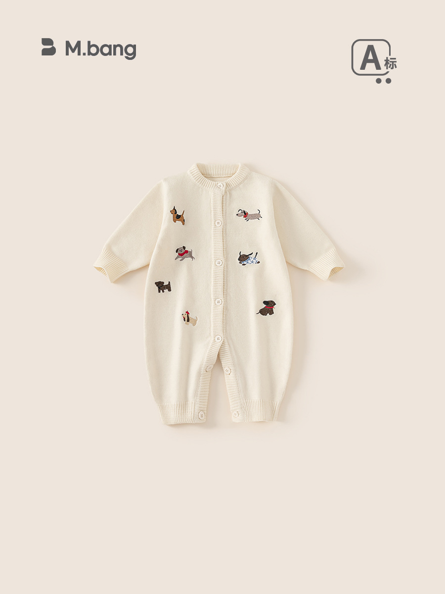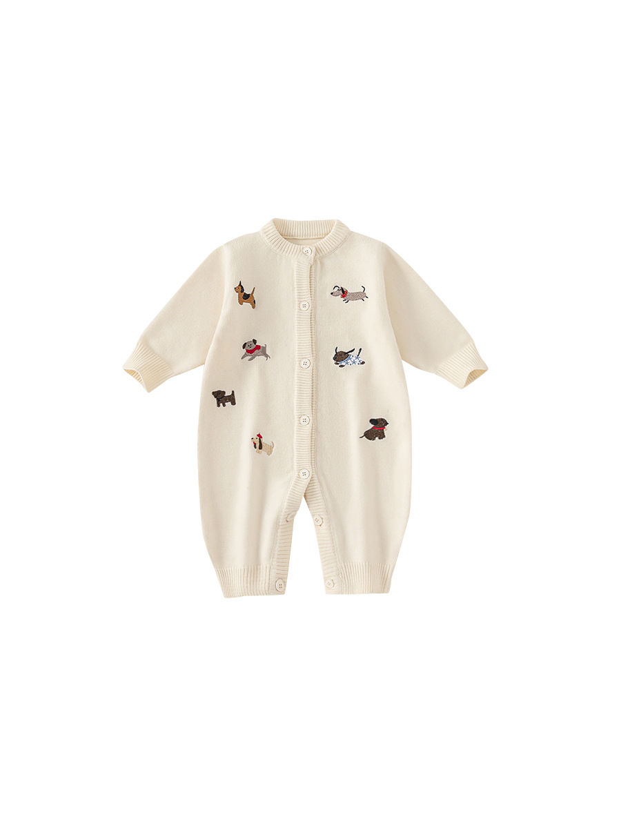 Bongxuan Newborn Jumpsuit Dachshund Puppy Baby Sweater Knitted Long-Sleeved Baby Jumpsuit Long Pants Crawler Suit