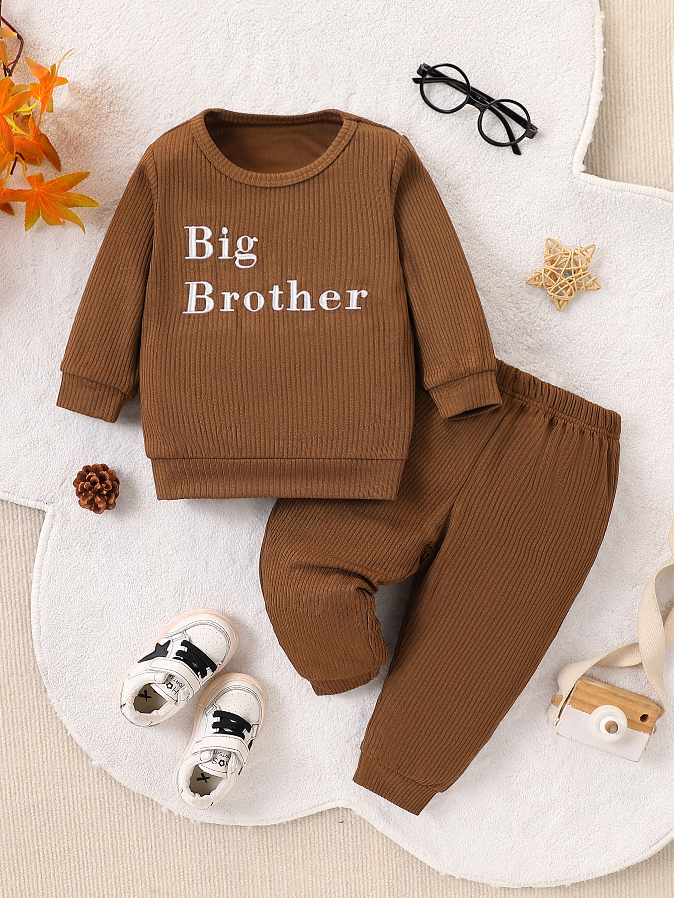 Boy's Baby's Autumn and Winter Pit Strip Big brother Embroidered Two-Piece T-Shirt Pants
