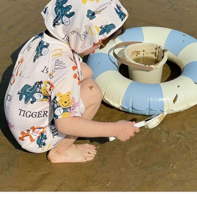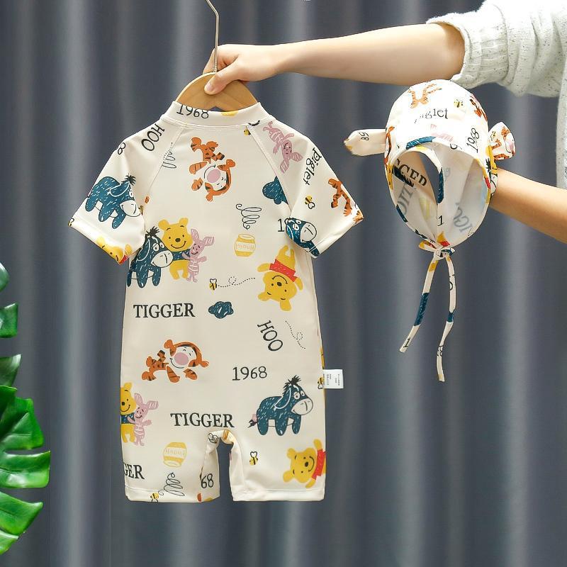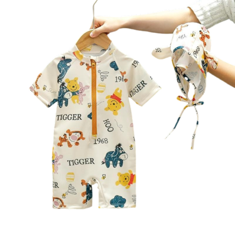 Boys' 2025 New Sun Protection Swimsuit and Swimming Cap Kidsren's Fashionable One-Piece Swimsuit Fashionable Baby Hot Spring Beach Vacation