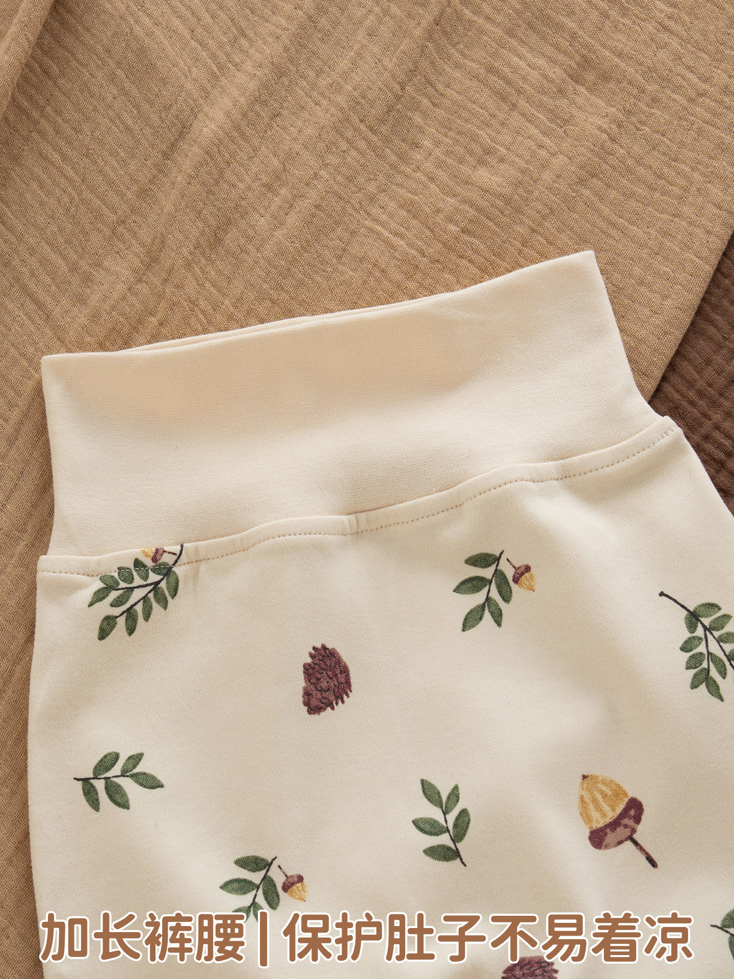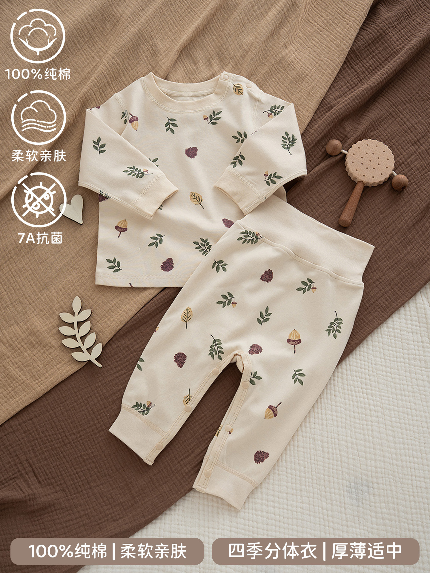 Boys and Girls Baby Spring and Autumn Two-Piece Set Infant Home Wear Base Layer Thermal Pajamas Pure Cotton Open-Crotch Belly Protection