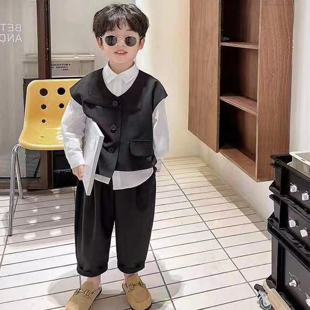 Boys' autumn suit 2024 New ruoshuai children's autumn clothes boys' handsome casual suit vest three-piece suit