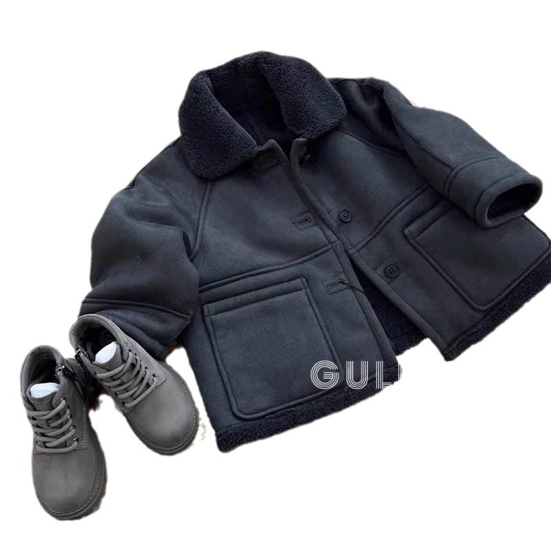 Boy's Casual Coat Autumn and Winter Medium Thick Top fleece-lined Thickened Handsome Autumn and Winter Boy's Baby Children's Winter Wear Children's Wear