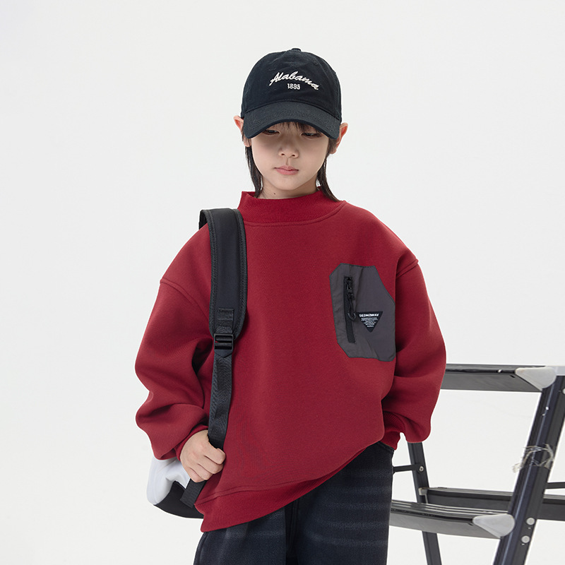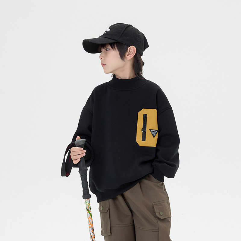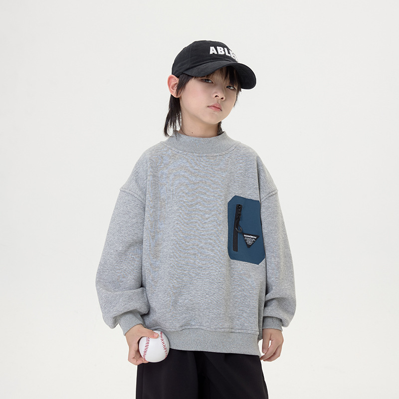 Boys' fleece-lined Sweat 2024 Winter New Korean Style Children's Zipper Pocket Top for Boys and Baby Thickened Long Sleeve Trendy