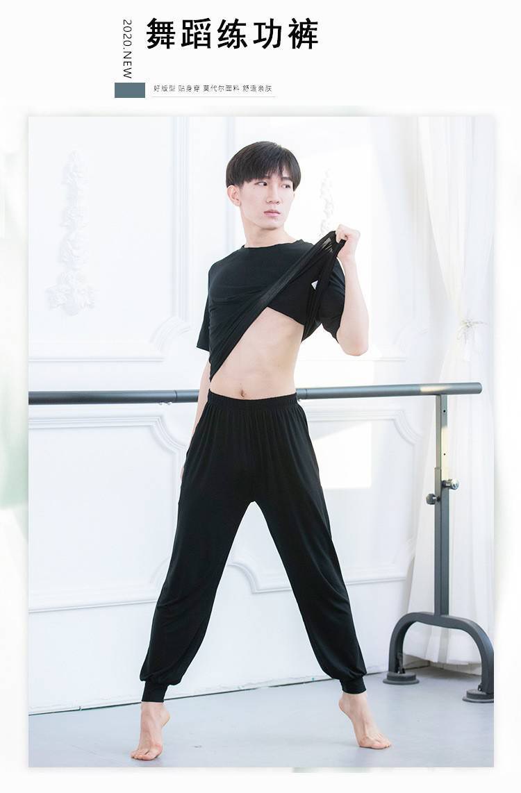 Boys Modern Dance Practice Suit Summer Loose Dance Top Short-sleeved Modal Crewneck Dance Suit Radish Pants Trousers