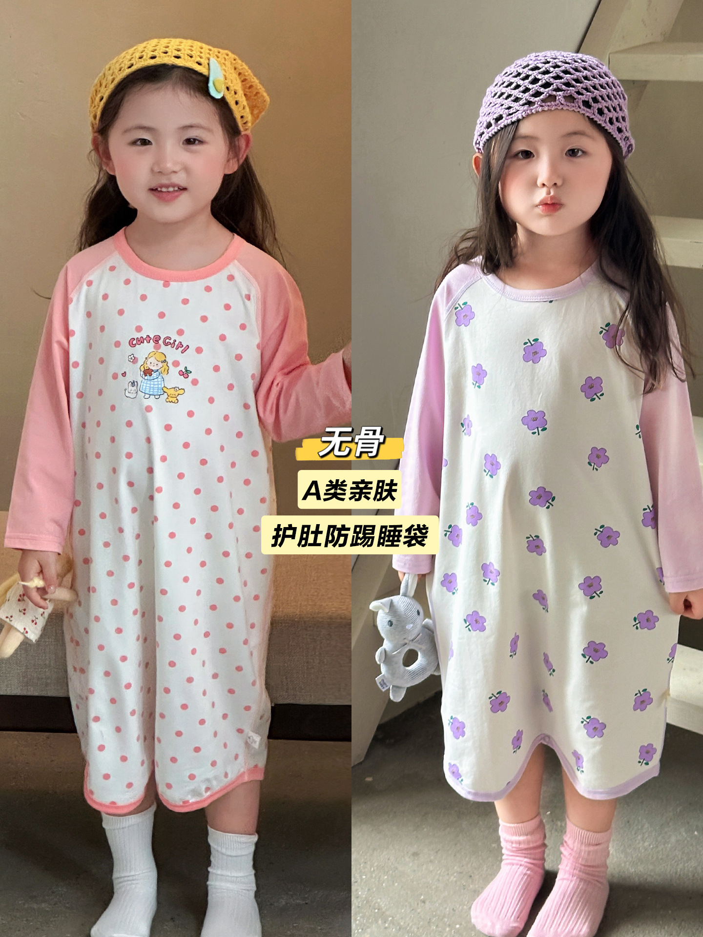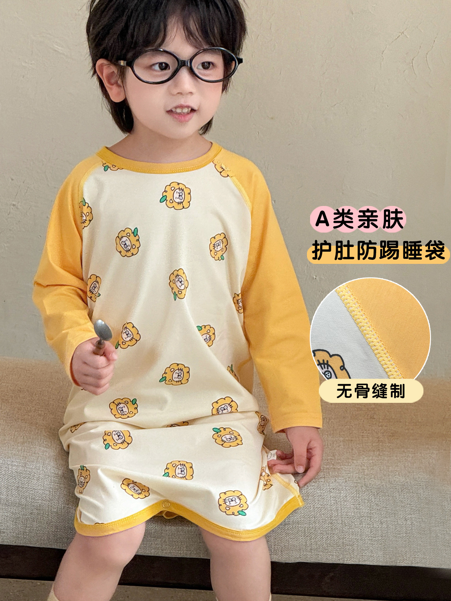 Boys' One-Piece Pajamas 2025 New Spring and Autum Pure Cotton Long-Sleeved Baby Girl Anti-Kick Sleeping Bag Kidsren's Home Clothes