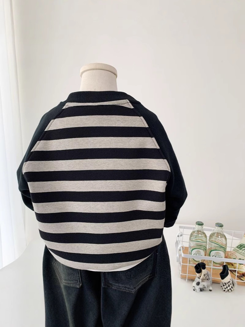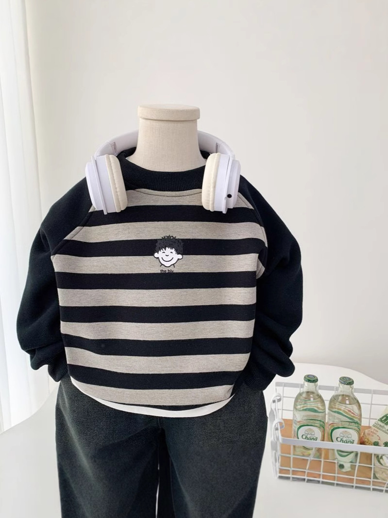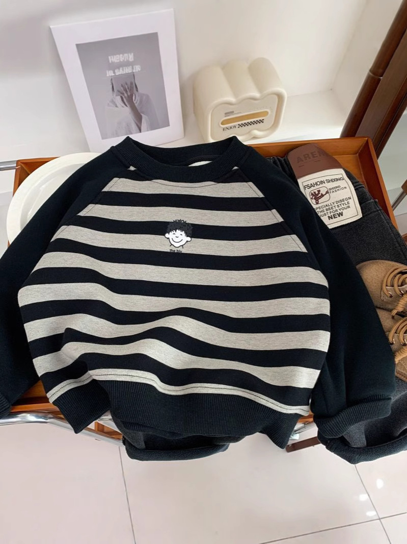 Boys' striped fleece-lined sweater 2025 new autumn and winter men's baby color matching Korean casual versatile pullover sweater