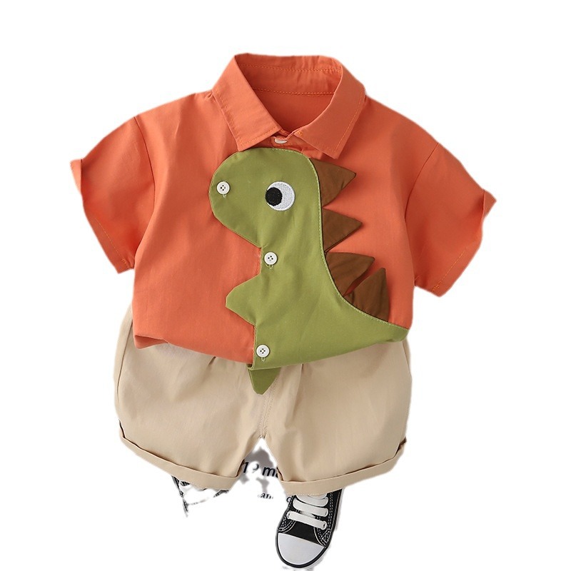 Boys Summer Clothes 2024 New Baby Short-Sleeved Shirt Suit Handsome Breathable Cartoon Half-Sleeved T-Shirt 1-5 Years Old Summer Clothes