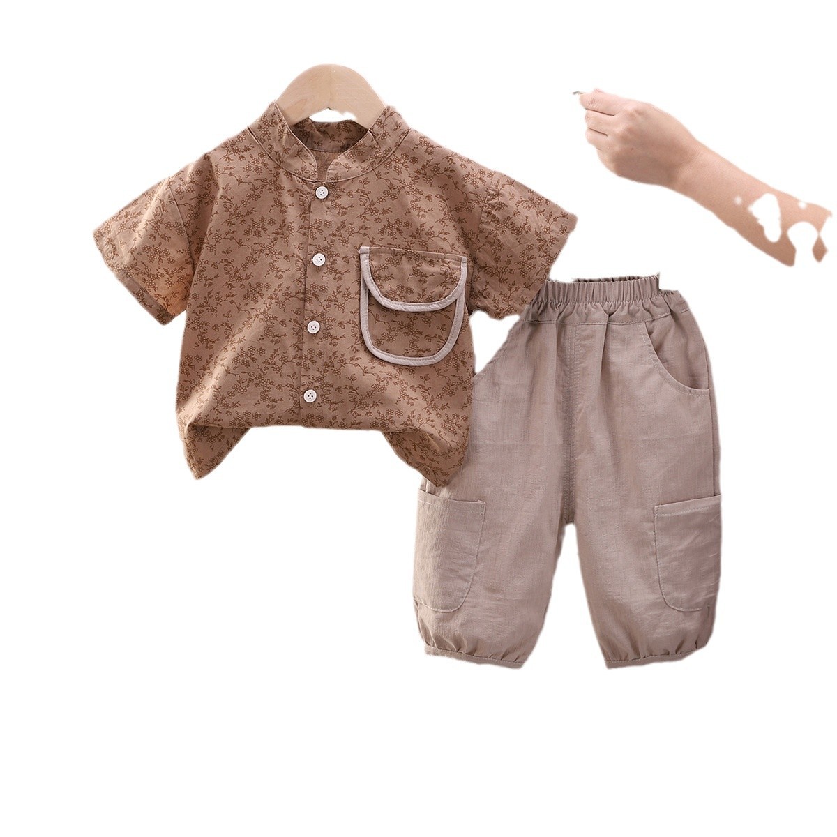 Boys Summer suit New Baby Children's Wear Western Style Men's Baby Summer Thin Short-sleeved Shirt Two-piece Set for Hair