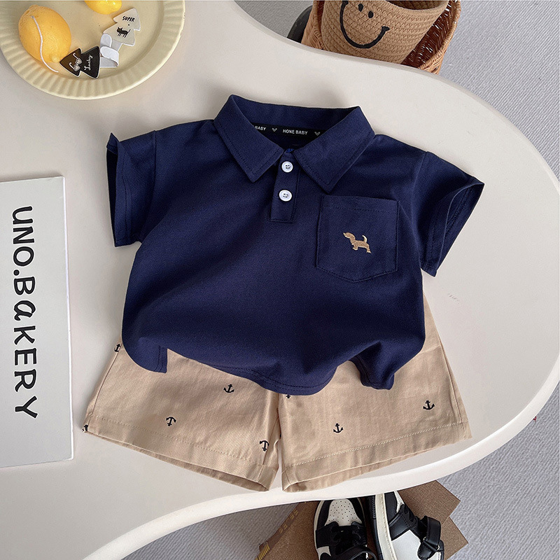 Boys' Summer suit New Style Western Style Baby's Summer Thin Short-Sleeved POLO Two-Piece Outer Wear Short Trendy