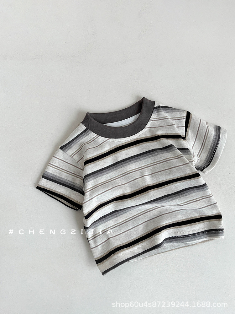Boys' Summer Wear suit 2024 New Men's Treasure Korean Style Western Style Casual Striped Top Workwear Five-Piece Pants Two-Piece Set