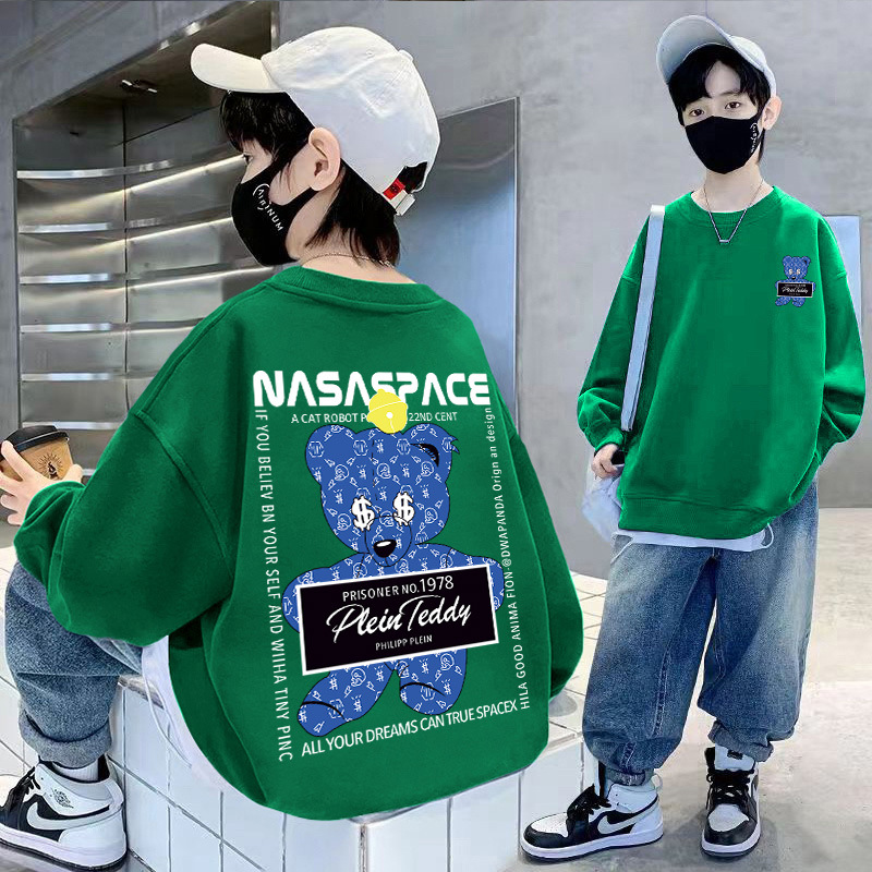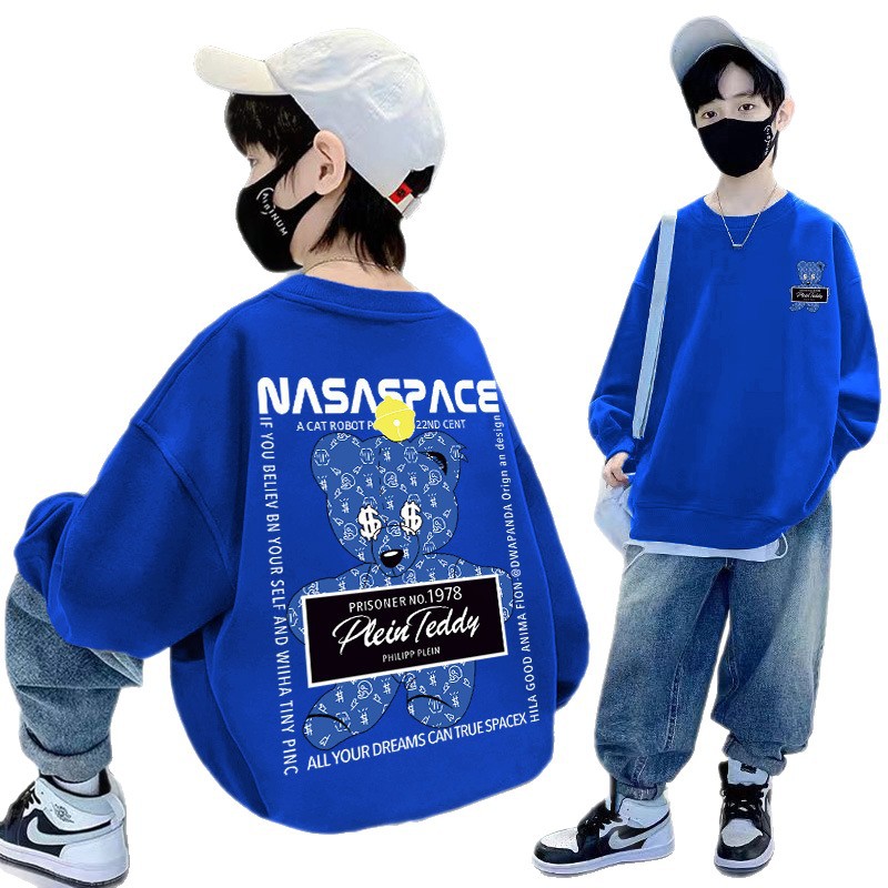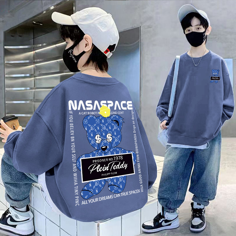 Boys' Sweatshirt Autumn Style Baby Boy Top Korean Version New Trendy Toddler Autumn Fleece-Lined Loose Fit Boys' Autumn Clothing Trendy