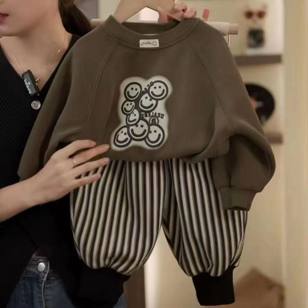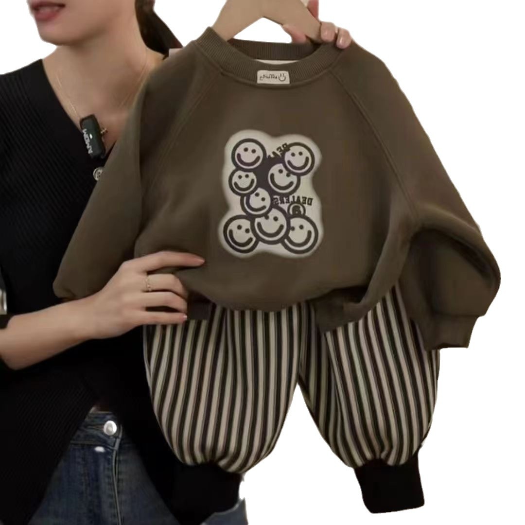 Boys' Winter Pile Smile Long-sleeved suit New Fashionable Children's Thickened Autumn and Winter Clothes Cool Handsome Baby Clothes Trendy