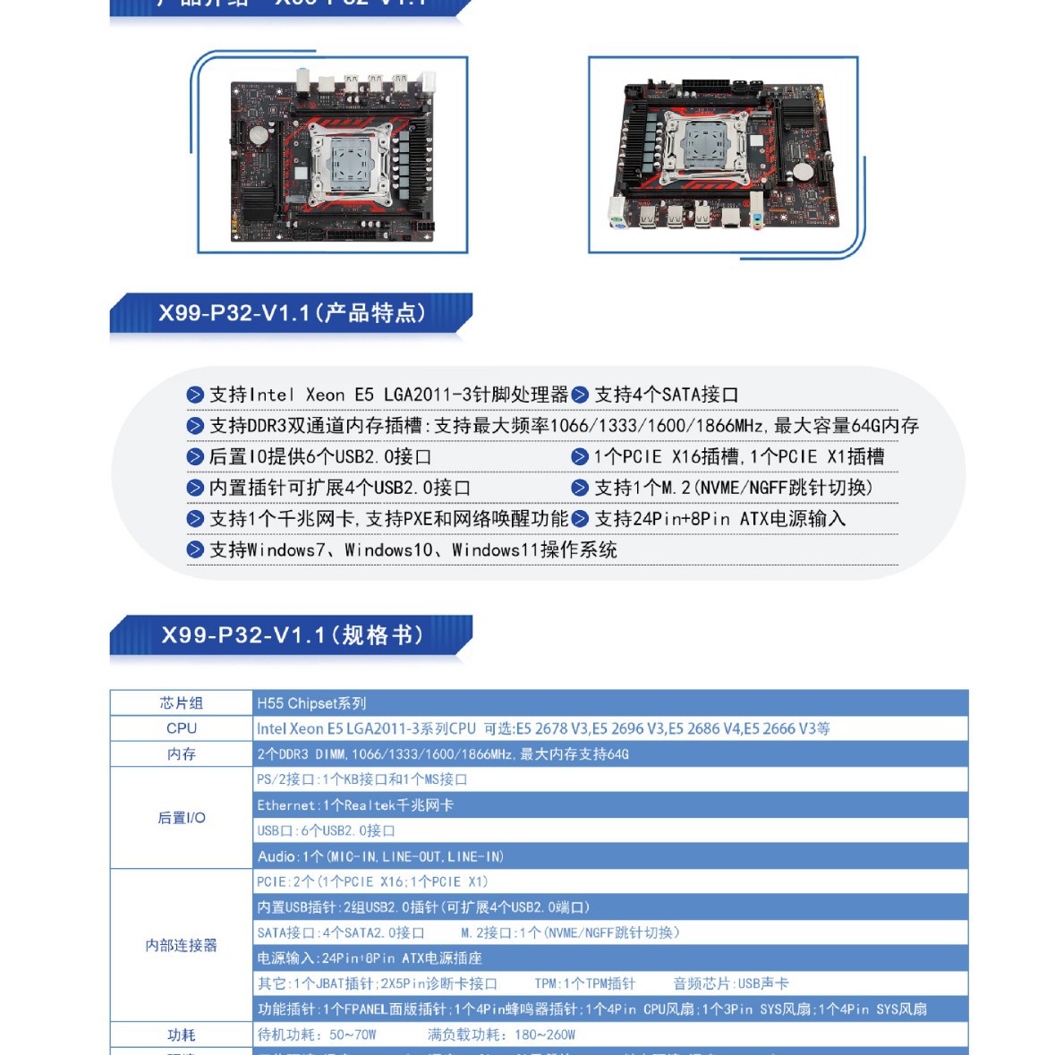 Brand New X99 Motherboard Lga2011-3 Pin Ddr3 Dual Slot X99-P32-V1.1 Desktop Computer