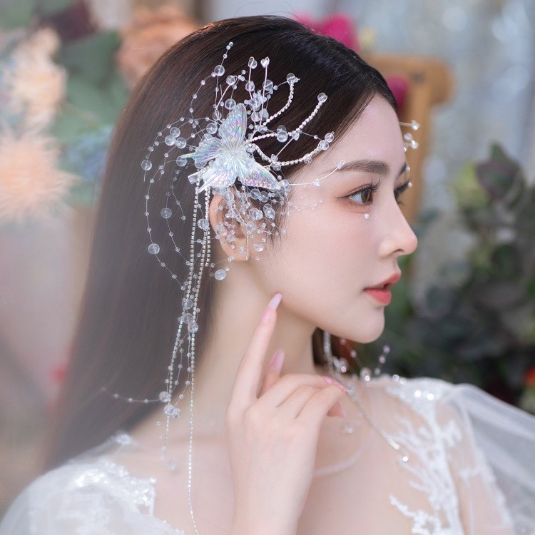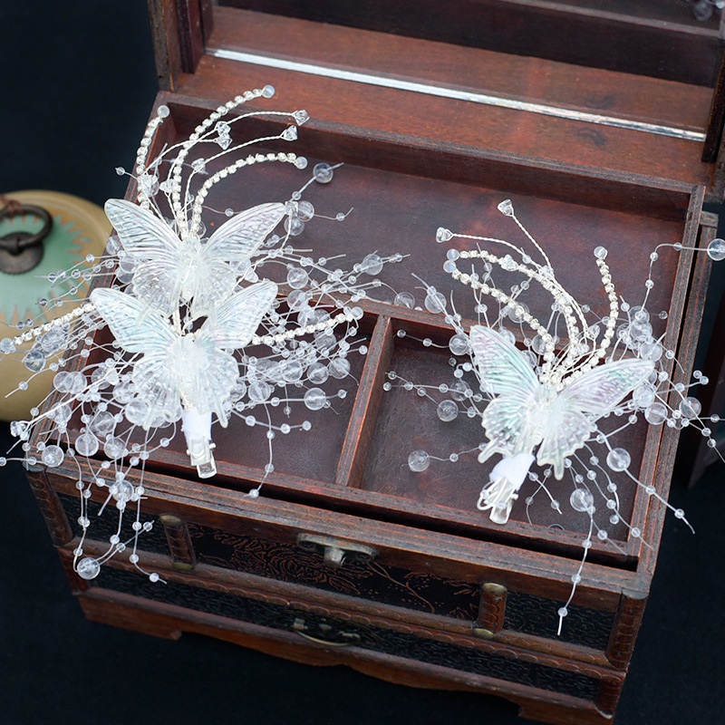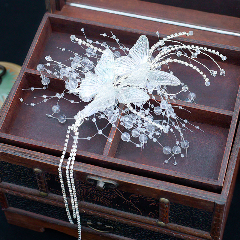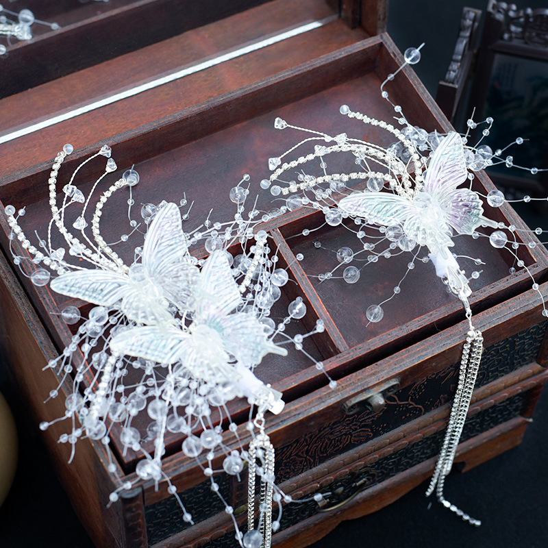 Bridal hair accessories handmade colorful butterfly tassel pair clip beautiful wedding dress wedding headdress fashion side hairpin