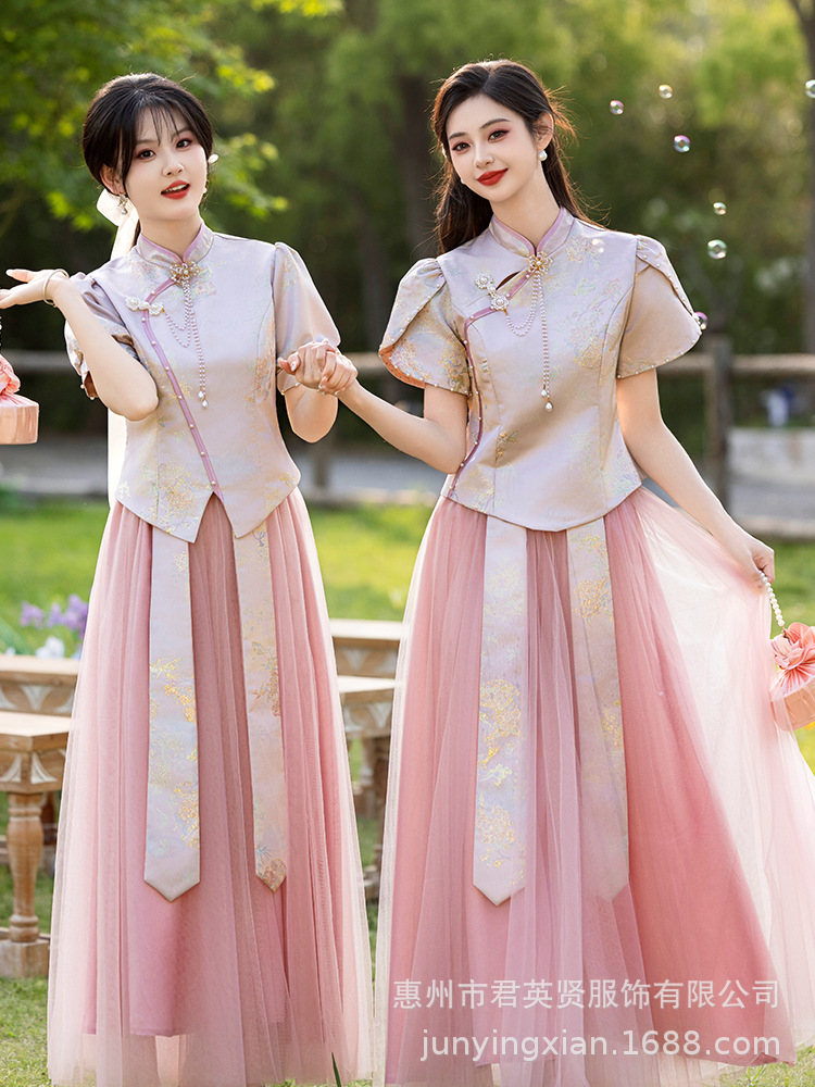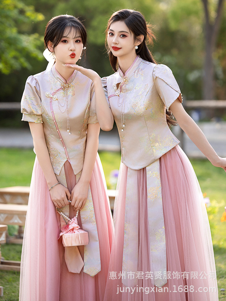 Bridesmaid's Dress Chinese Women's 2025 New Summer Beautiful Sister Group Wedding Dress Small High-end Cheongsam Bridesmaid's Dress