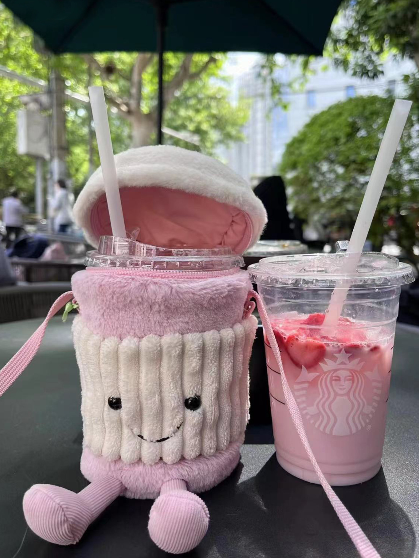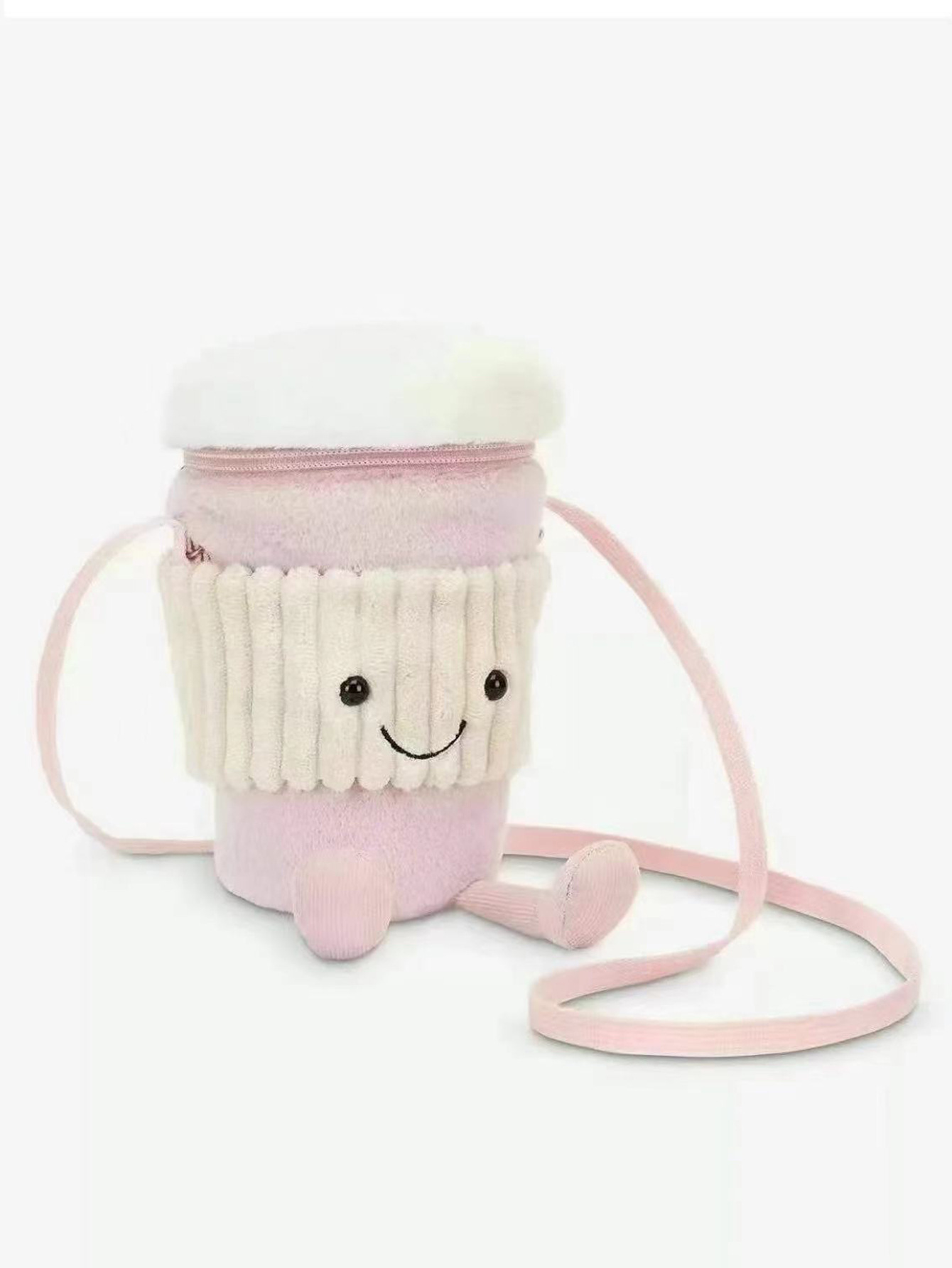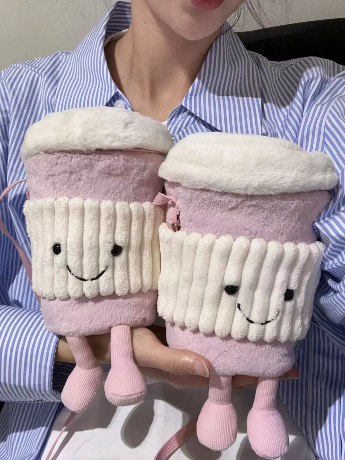 British cartoon cup set coffee bag slung women's bag gift plush bag accompanying toy cup bag cartoon milk tea bag