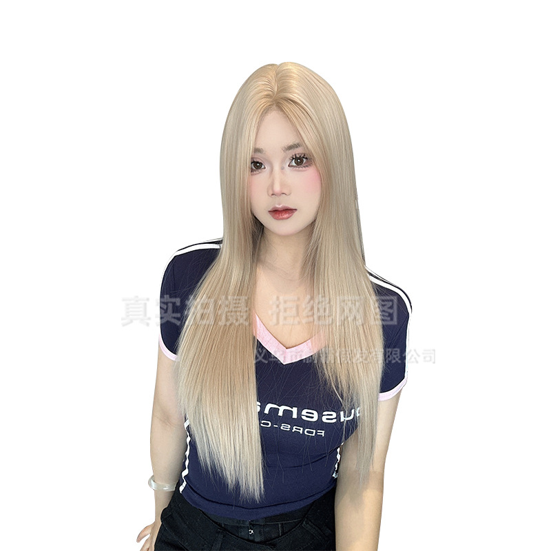 Bully Wig Linen Gold Mesh Long Straight Hair Fashionable Natural Cyber Celebrity Atmosphere Front Lace Daily Full Head Cover