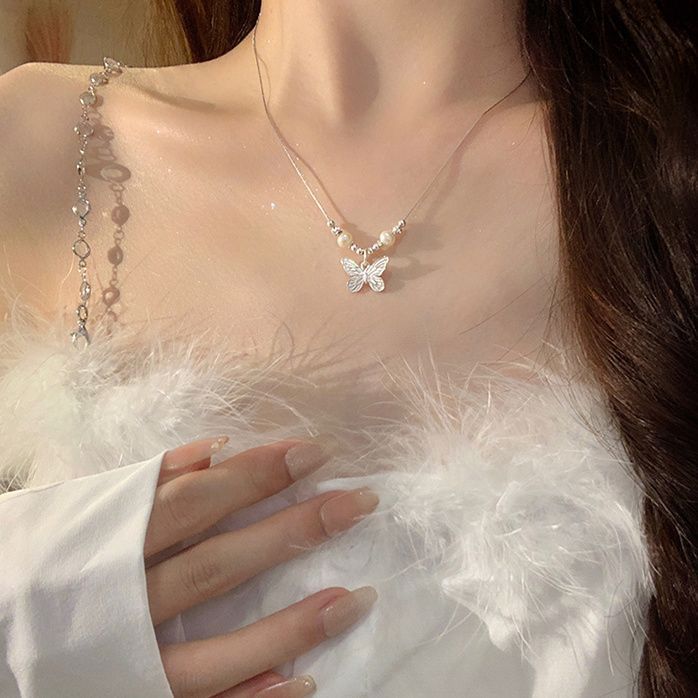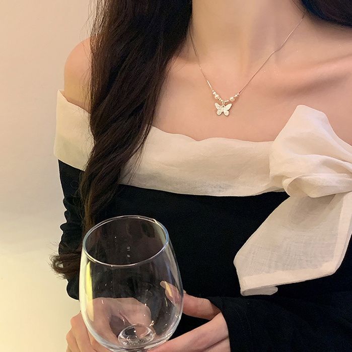 Butterfly Pearl Beaded Necklace Fashion New Design Accessory Versatile Light Luxury Simple Body Clavicle Chain