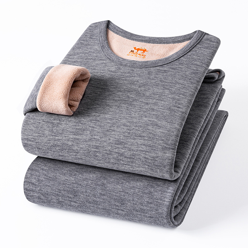 Camel Wool Thick Autumn and Winter Thermal Underwear Set for Dad, Fleece-Lined and Thickened, Heat-Generating, for Middle-Aged and Elderly Men and Women
