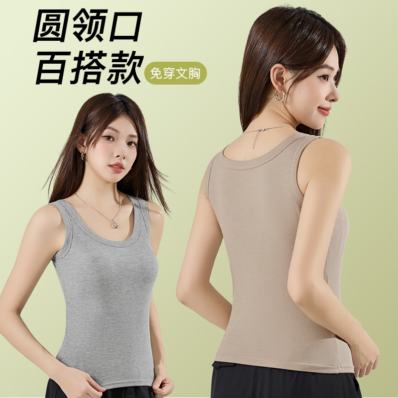Camisole Vest Women's Inner Covering Paramilis Wide Shoulder Strap Base Top Non-marking Breathable Summer Outer Wearing Threaded Round Neck Vest
